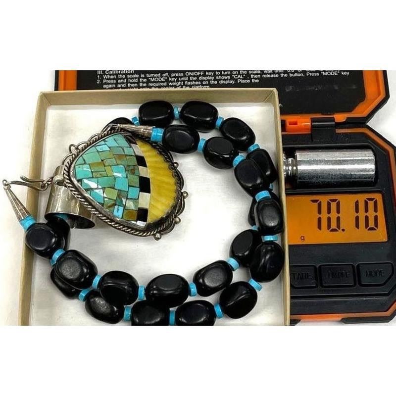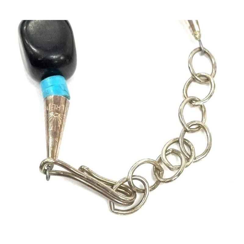 Signed Joseph Tenorio Santo Domingo Necklace – Onyx, Turquoise & Shell 21"