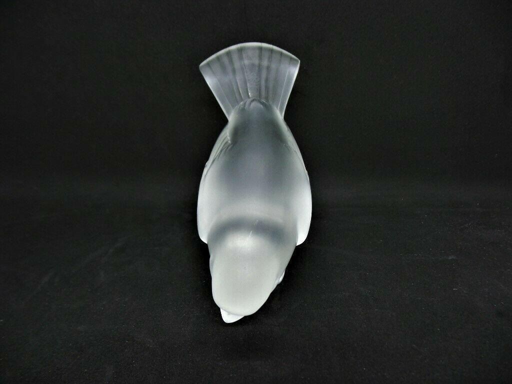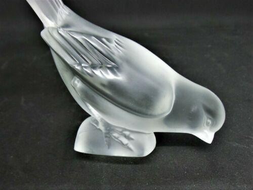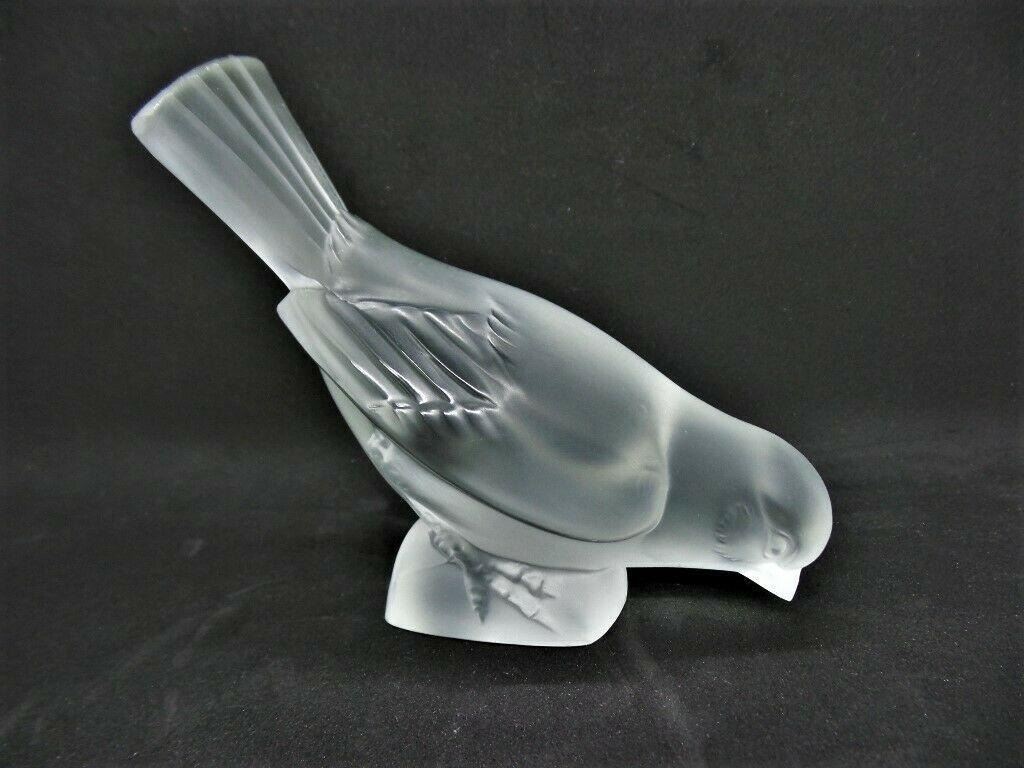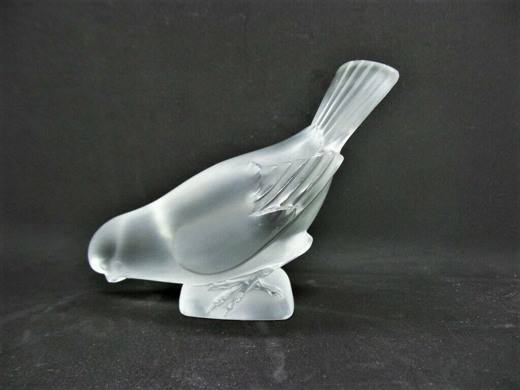 Lalique fine crystal sparrow bird figurine, in head down feeding position. Signed Lalique France on the bottom. 5" X 2 1/4" X 4" H. Â