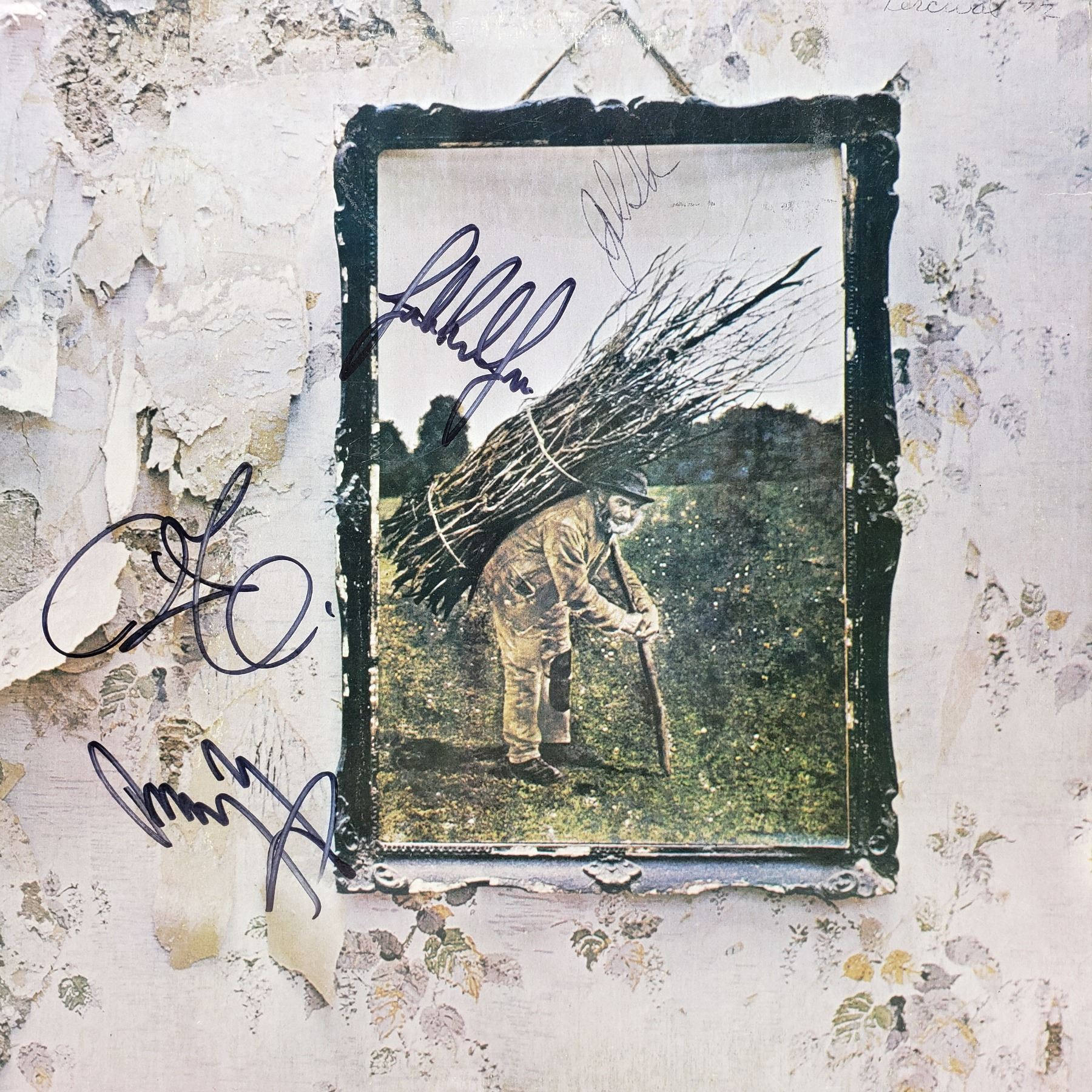 Signed by Robert Plant, Jimmy Page, John Paul Jones and John Bonham (5/31/1948-9/25/1980)