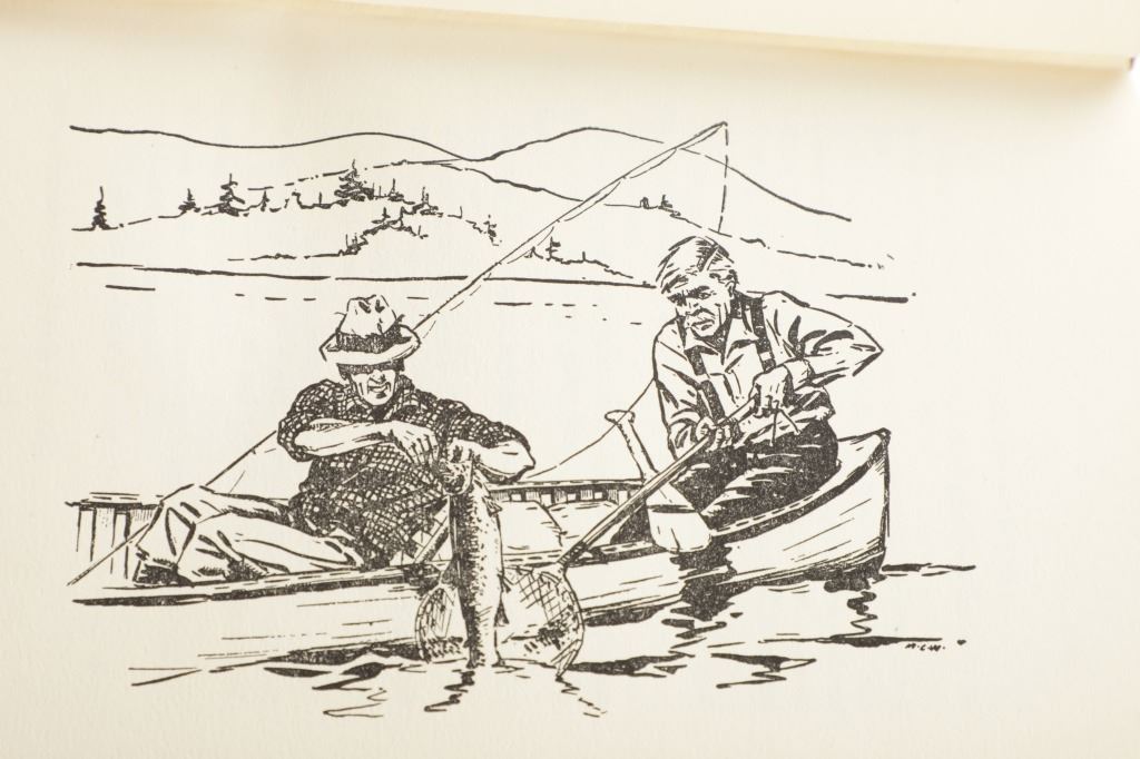 This book features a brown and wine coloured cloth on board cover with gilt embossed design of a fish, coloured frontispiece and other black and white illustrations by Milton C. Weiler. In good condition, cover has normal wear consistent with normal handling, foxing noted throughout pages, measures 9.5"L x 6.25"W x .75"D