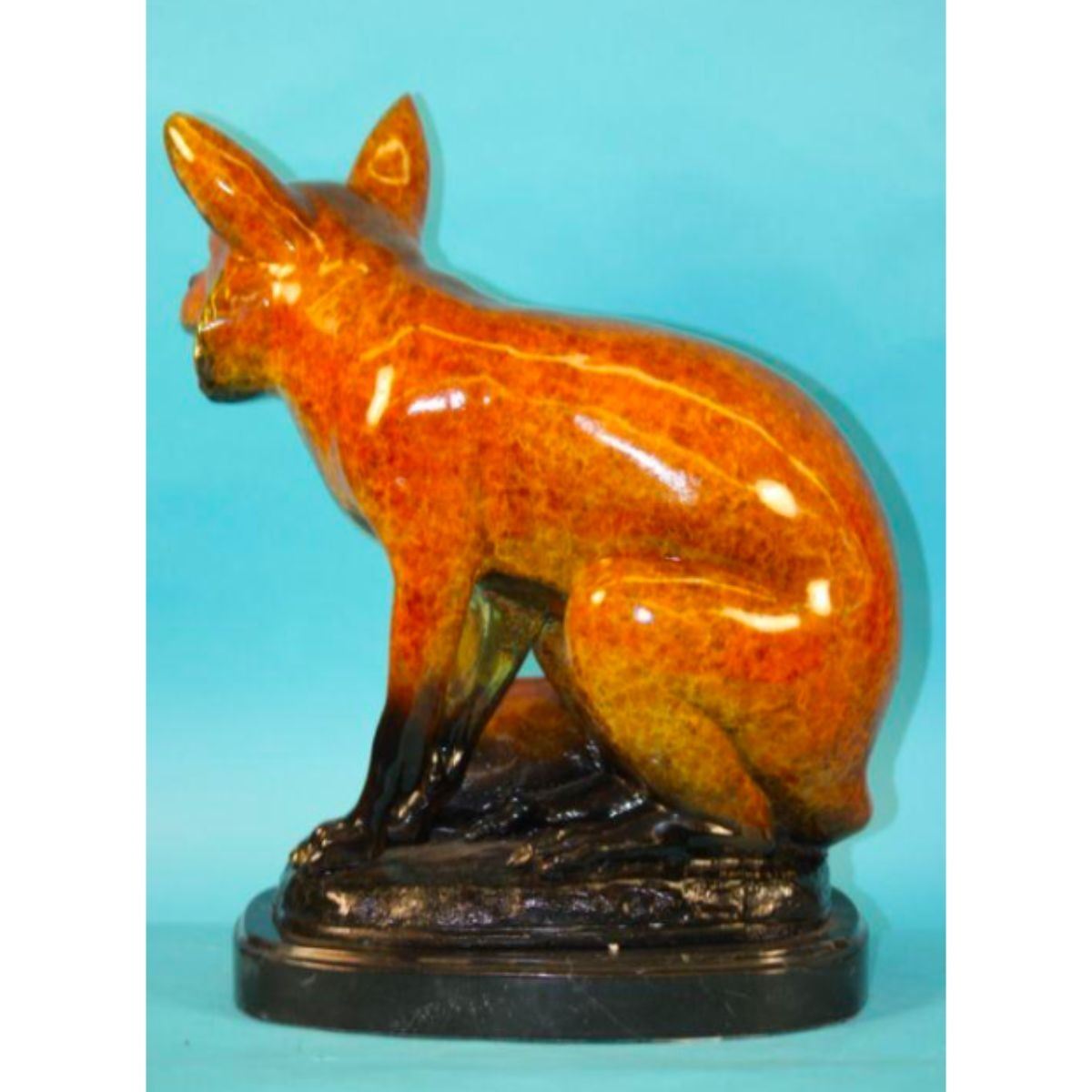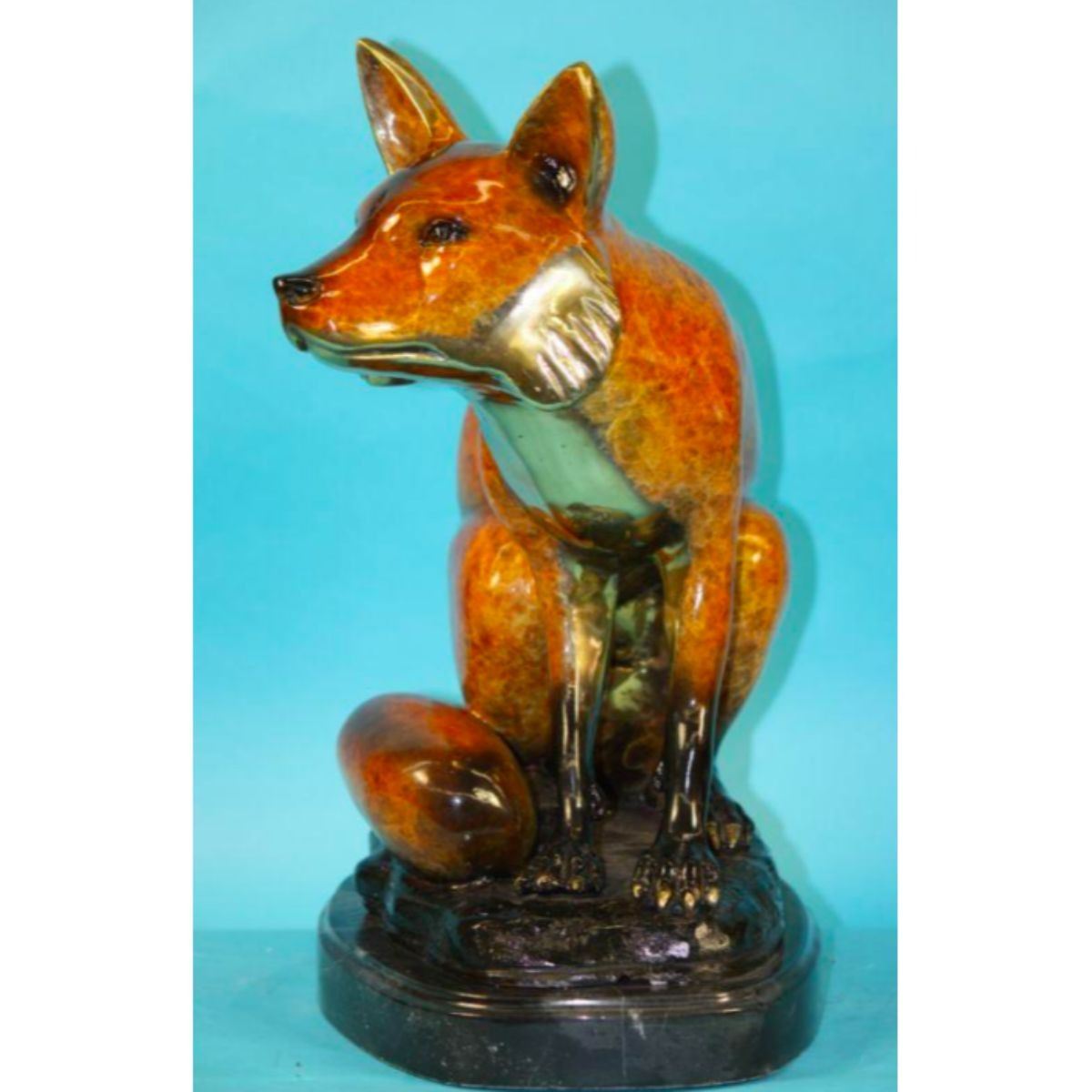 Original signed & numbered, limited edition of 100, bronze sculpture of a fox. Signed Marius. Lost wax casting bronze with colorful enameled & gilt patina mounted on marble base. 18" X 18". 30lbs.Â