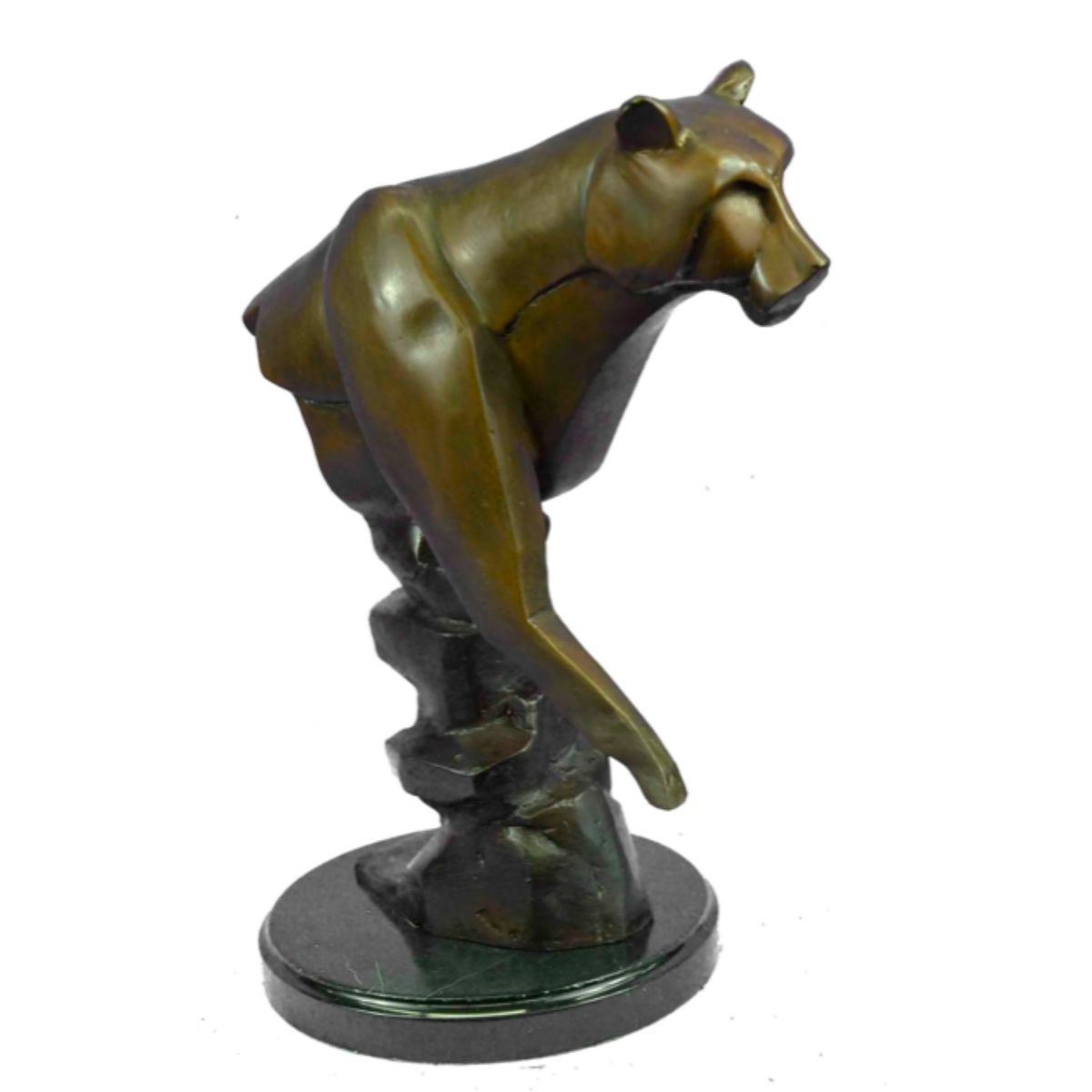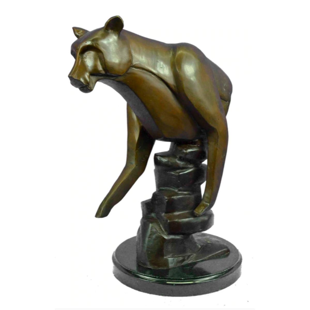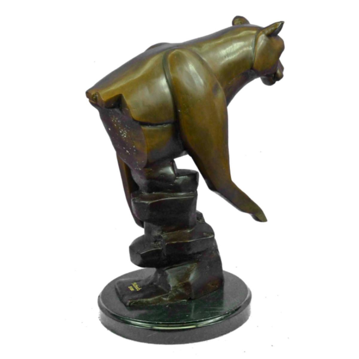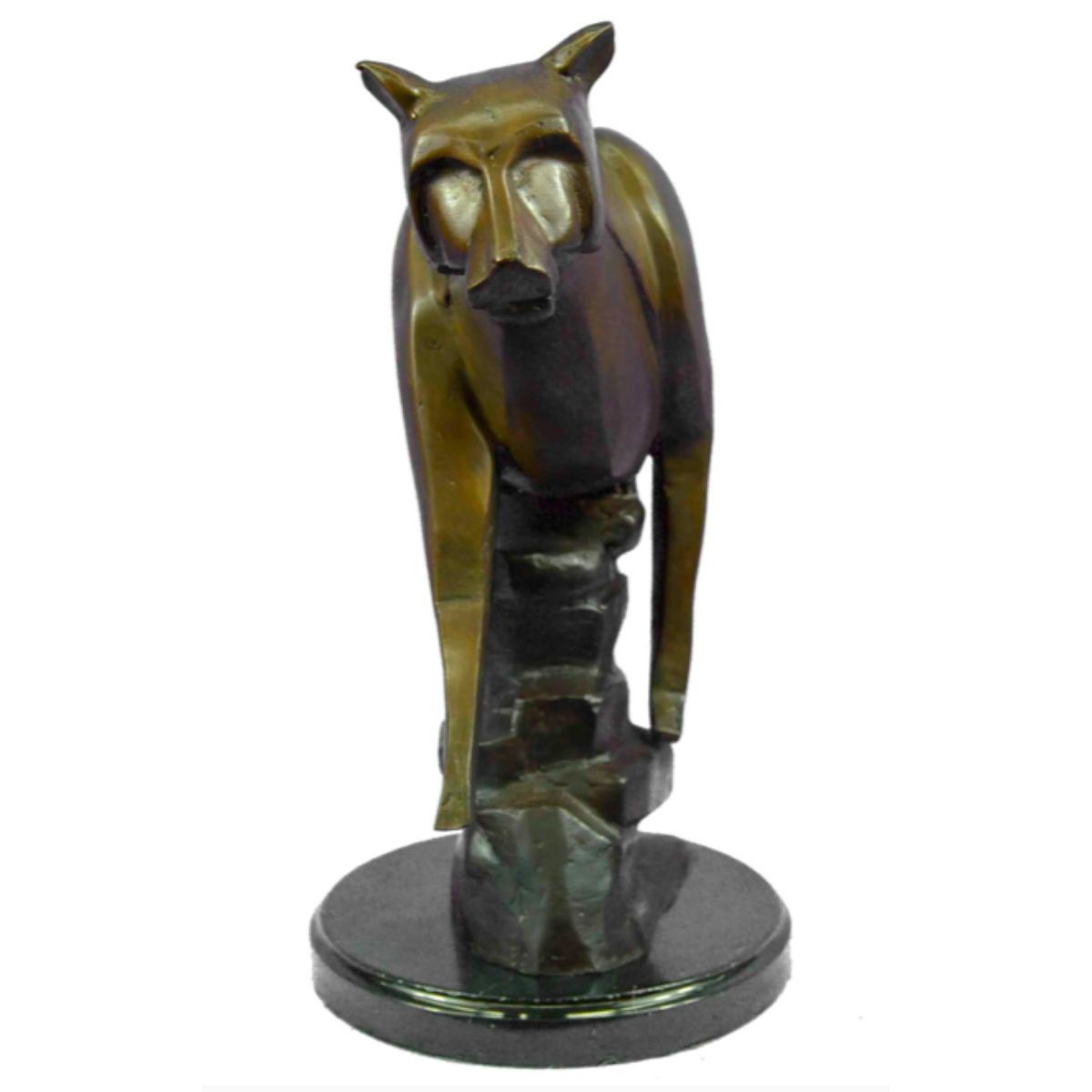 Limited edition of 100, modern abstract lcougar sculpture. Lost wax casting method bronze, with brown patina, mounted on marble base. Signed by the artist, Marius, at base. 14" H X 10" W. 13 lbs.