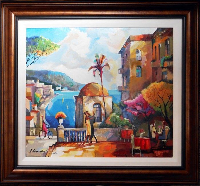 Signed Limited Edition on Wood by Alexander Grinshpun, titled "First Dance". Signed in the edition 395 limited numbered impressions. Beautifully Museum Framed. Dimensions are 22.5X 25.5. Certificate of authenticity provided. Authentic guaranteed! CJRAP42100275