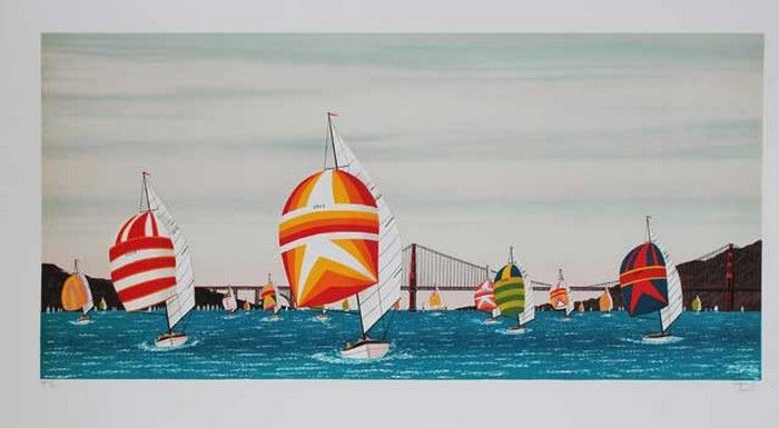 Signed Limited Edition Lithograph on paper by artist Fanch Ledan, titled "Spinnakers". Signed in an edition of AP30 limited numbered impressions. Dimentions are approximately 21 X 35.5. Certificate of authenticity provided. Authentic guaranteed! CJRAP46200125