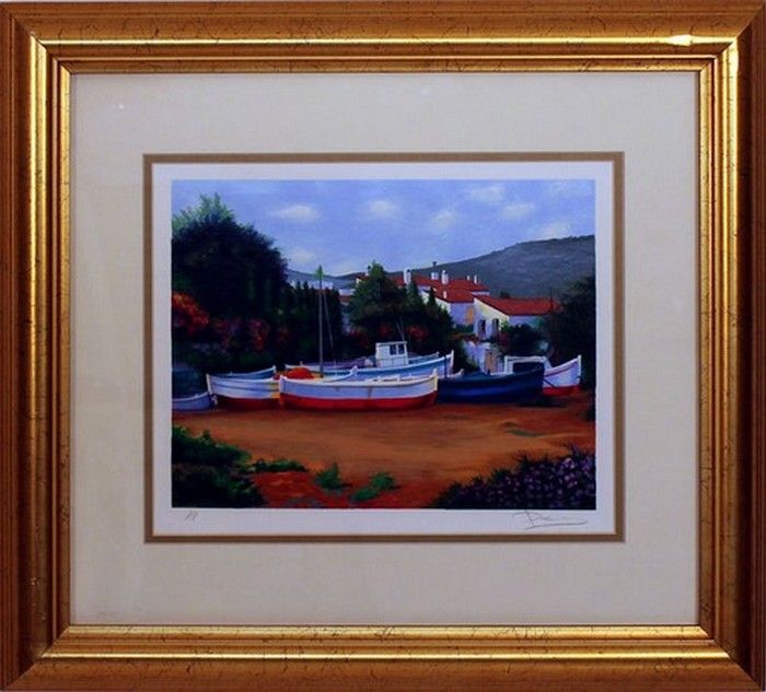 Signed Limited Edition Serigraph on paper by artist Alex Perez, titled "Boats of Cadaques". Signed in an edition AP. Beautifully Museum Framed! Dimentions are approximately 18.75 X 20.75. Certificate of authenticity provided. Authentic guaranteed! CJRAP5100090