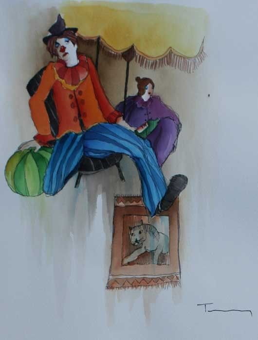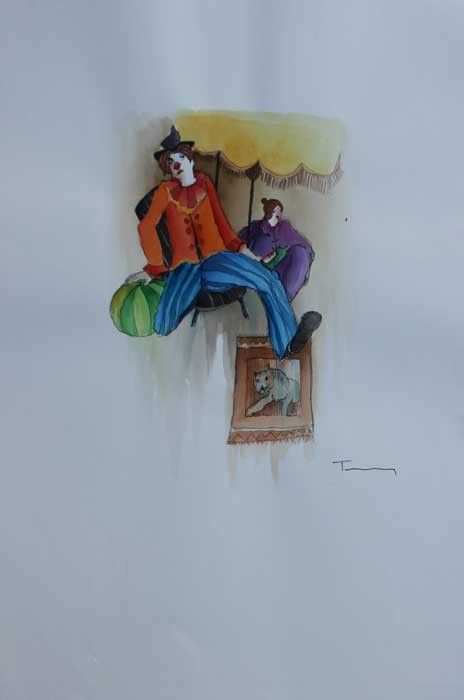 Original Watercolor on Paper with Original Sketch Hand Signed by Itzchak Tarkay, titled "Resting Clown". Dimentions are approximately 33 X 22. Certificate of authenticity provided. Authentic guaranteed!              CJRAP537001450