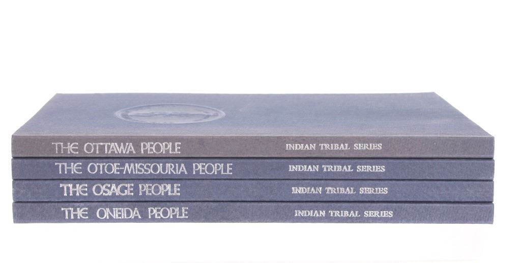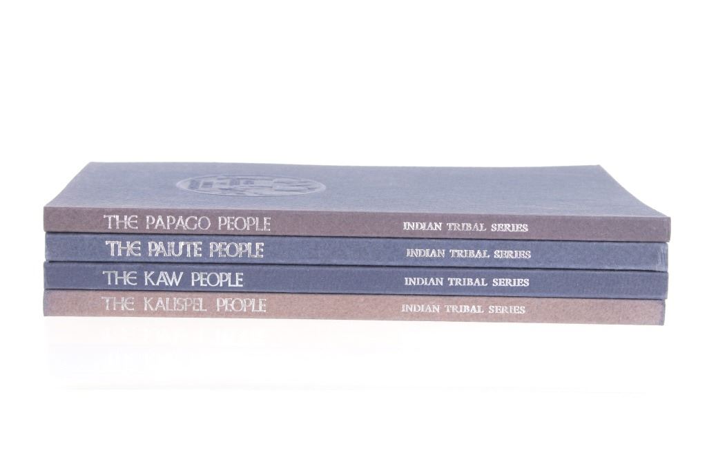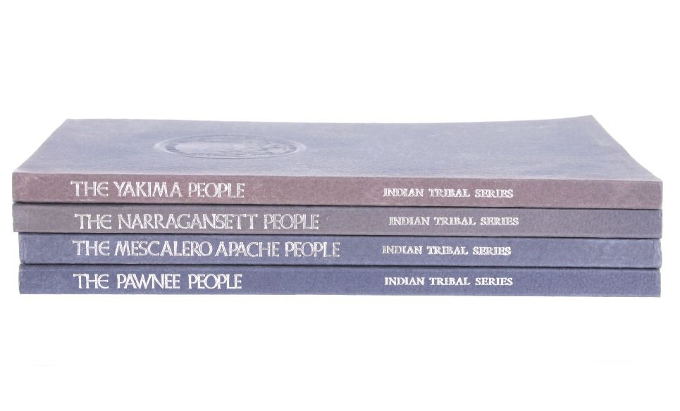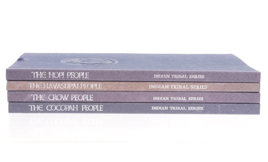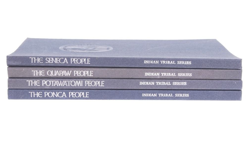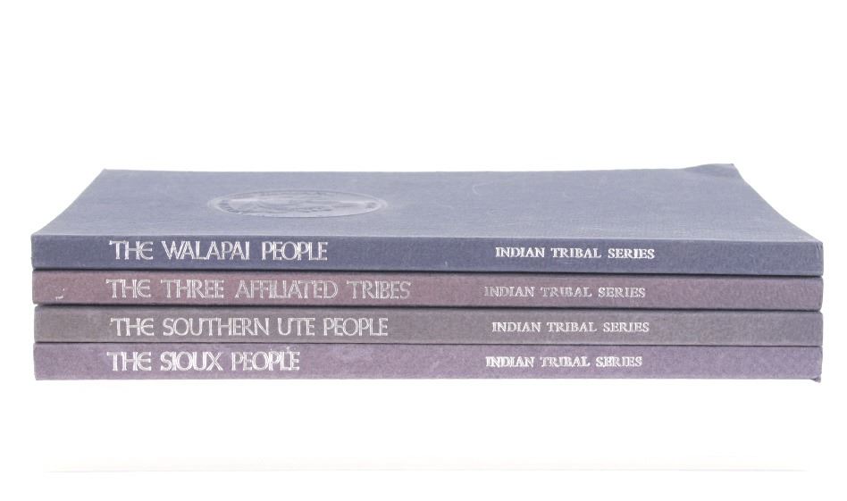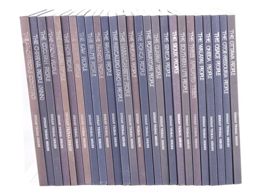 In this lot we have 26 limited First edition signed, "Indian Tribal Series" books (1972-1977, Phoenix, AZ) of the Apache (Coyotero), Chippewa, Cocopah, Crow, Havasupai, Kalispel, Kaw, Mescalero Apache, Narragansett, Oneida, Osage, Otoe-Missouria, Ottawa, Paiute, Papago, Pawnee, Ponca, Potawatomi, Quapaw, Seneca, Sioux, Southern Ute, Three Affiliated Tribes, Walapai and Yakima people. Each book has a number showing what copy it is. Each book specifically tells the history and culture of the respective Native American tribes. On the front cover of each of these books is embossed the respective tribal seal for that tribe. These books are a fantastic addition to any American Frontier or Native American Indian collection.