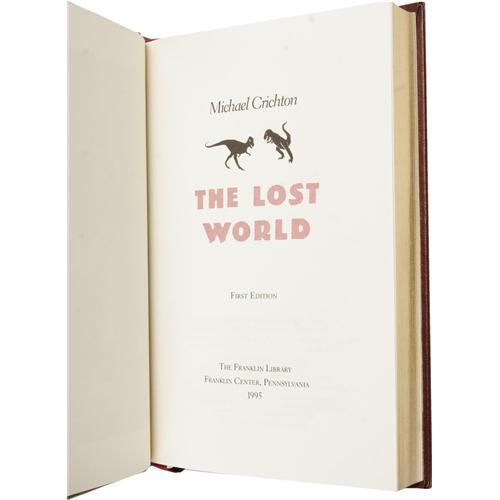 <B>Michael Crichton Signed Limited <I>The Lost World.</B></I></B></I> (Franklin Center: The Franklin Library, 1995), limited first edition exclusively for the members of the Signed 1st Edition Society, 393 pages, bound in maroon leather with gilt titles and decoration, gilt edges, marbled endpapers, 8vo (6.5" x 9.5"), signed "<I>Michael Crichton</B></I>" on the third free endpaper, in fine condition.<BR><BR><b>Shipping:</b> Books & Catalogs (<a target="_blank" href="http://www.heritageauctions.com/common/shipping.php">view shipping information</a>)