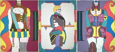 Reference #: ULXX8167-B Artist Name: Lindner, Richard Title: Changing Sexuality (Triptych) Medium: Serigraph Edition Size: 2000 Year: Unknown Paper Size: 46 x 102 inches Image Size: 46 x 102 inches Condition: B+: Very Good Condition, with slight signs of handling or age Notes: "Changing Sexuality", the Lindner prints, are characteristic of his mature monumental style. The works are produced in 13 colors, silk-screened on three panels, each 46 inches high by 34 inches wide. When each panel is hung or mounted side-by-side it is 102 inches wide. EACH PANEL IS SIGNED. SOLD AS A SET ONLY
