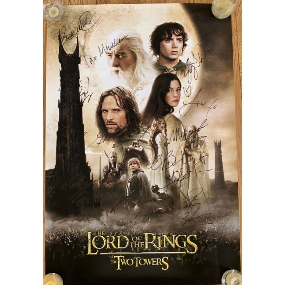 Signed by Sean Astin, Cate Blanchett, Orlando Bloom, Billy Boyd, Ian McKellen, Viggo Mortensen, Andy Serkis, Hugo Weaving, Elijah Wood, Sean Bean & Peter Jackson