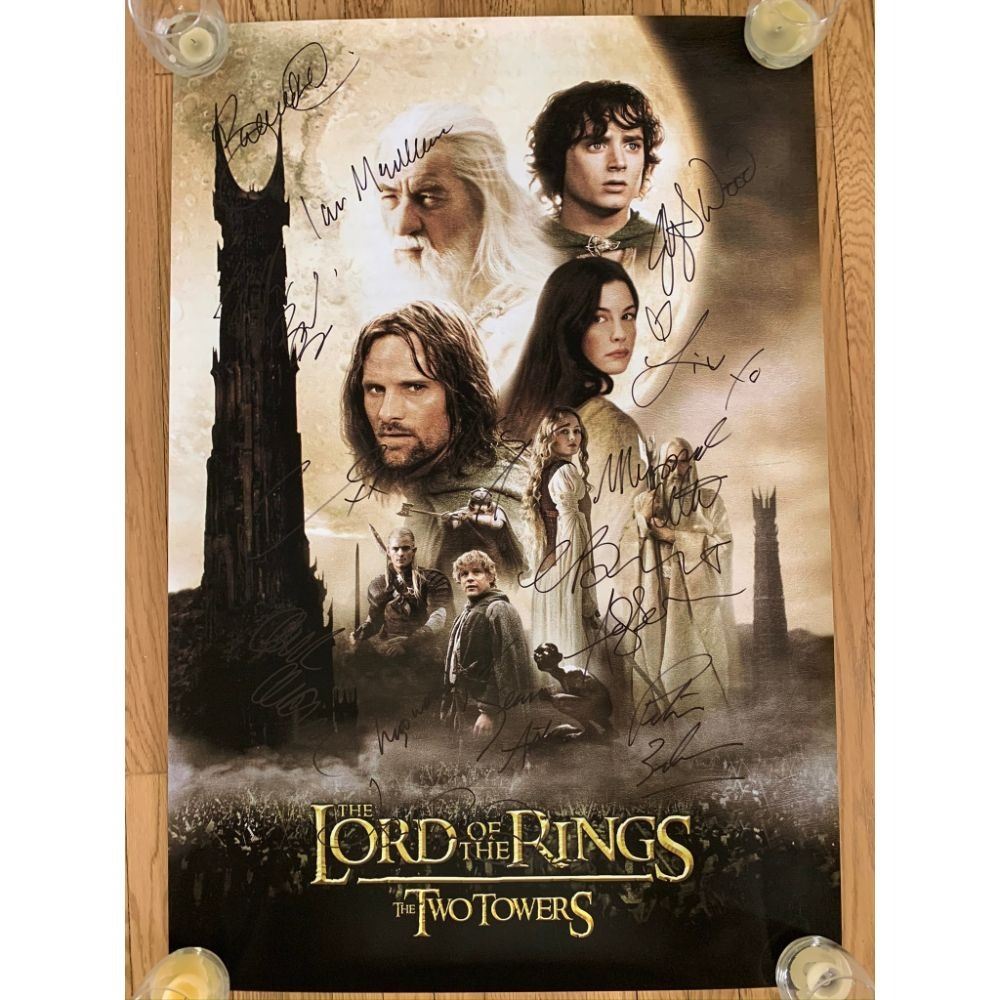 Signed by Sean Astin, Cate Blanchett, Orlando Bloom, Billy Boyd, Ian McKellen, Viggo Mortensen, Andy Serkis, Hugo Weaving, Elijah Wood, Sean Bean & Peter Jackson
