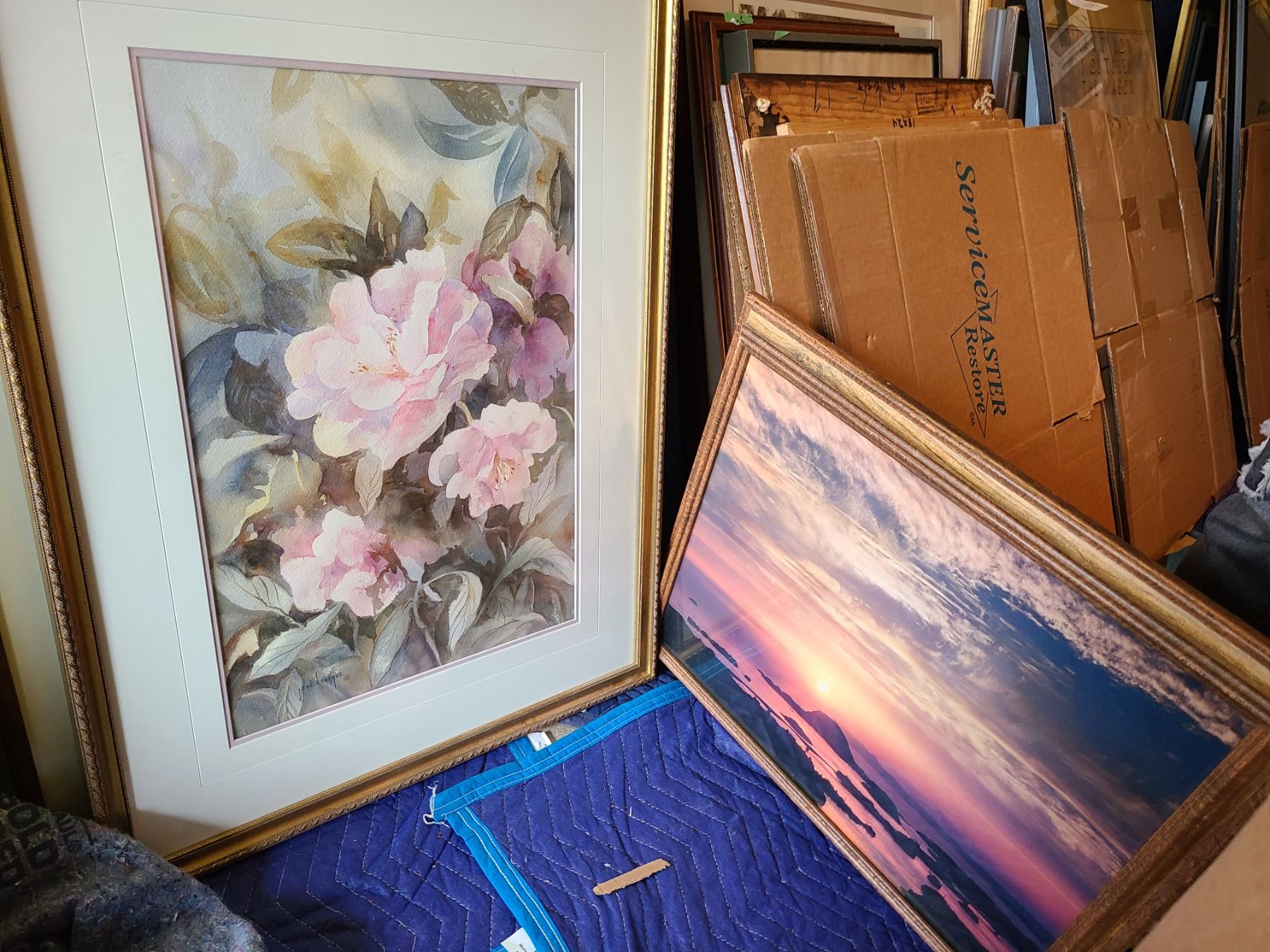 Signed Madonna, Large Framed photo of Abbotsford 40X29, Bev Doolittle, Fliwers by Vivia June Burque and more. (7 pieces in lot) pickup at 10 am