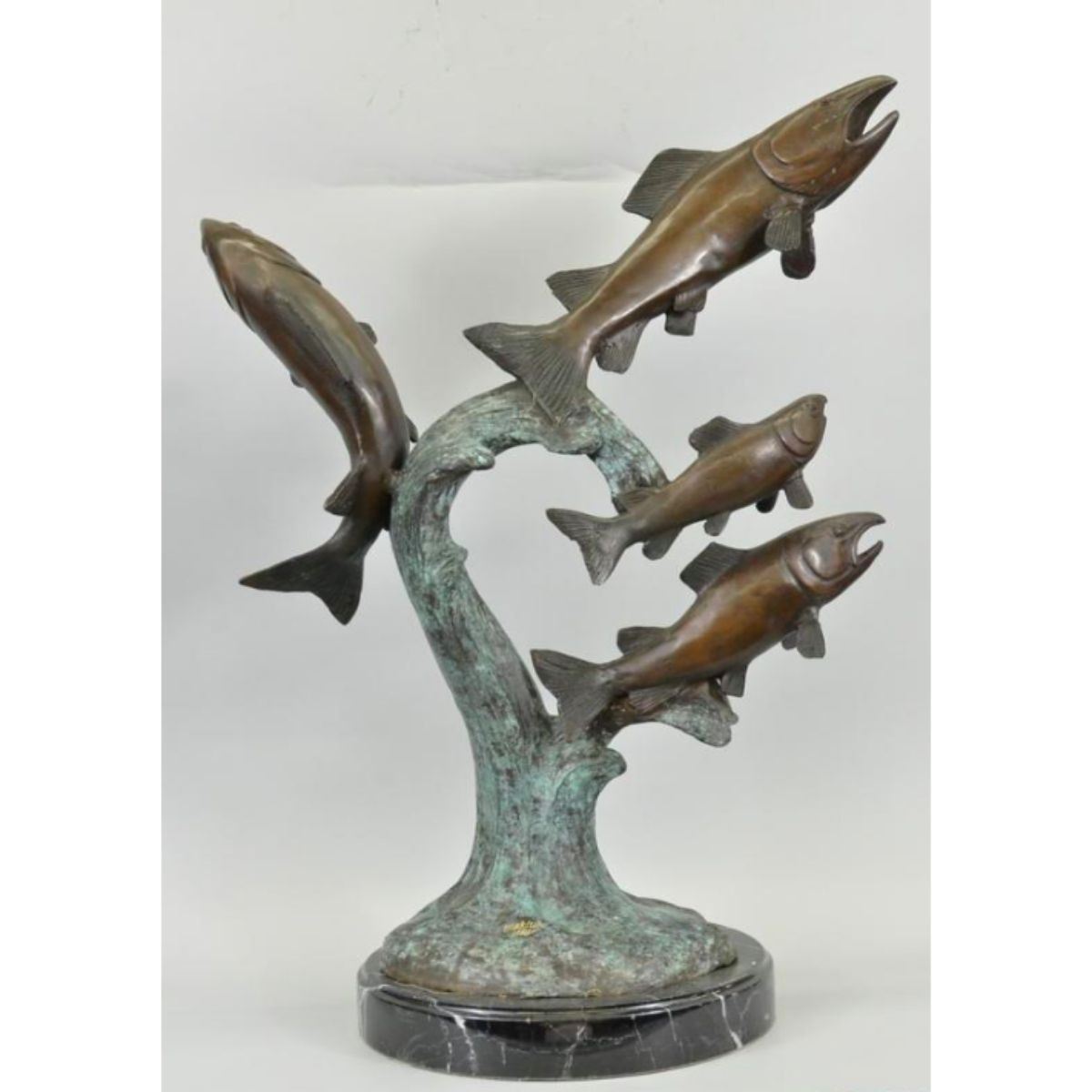 Signed Marius, limited edition yachting, ocean fish sculpture. Lost wax casting method bronze with brown & green patina, mounted on a marble base. 25" H X 18" W. 26lbs.
