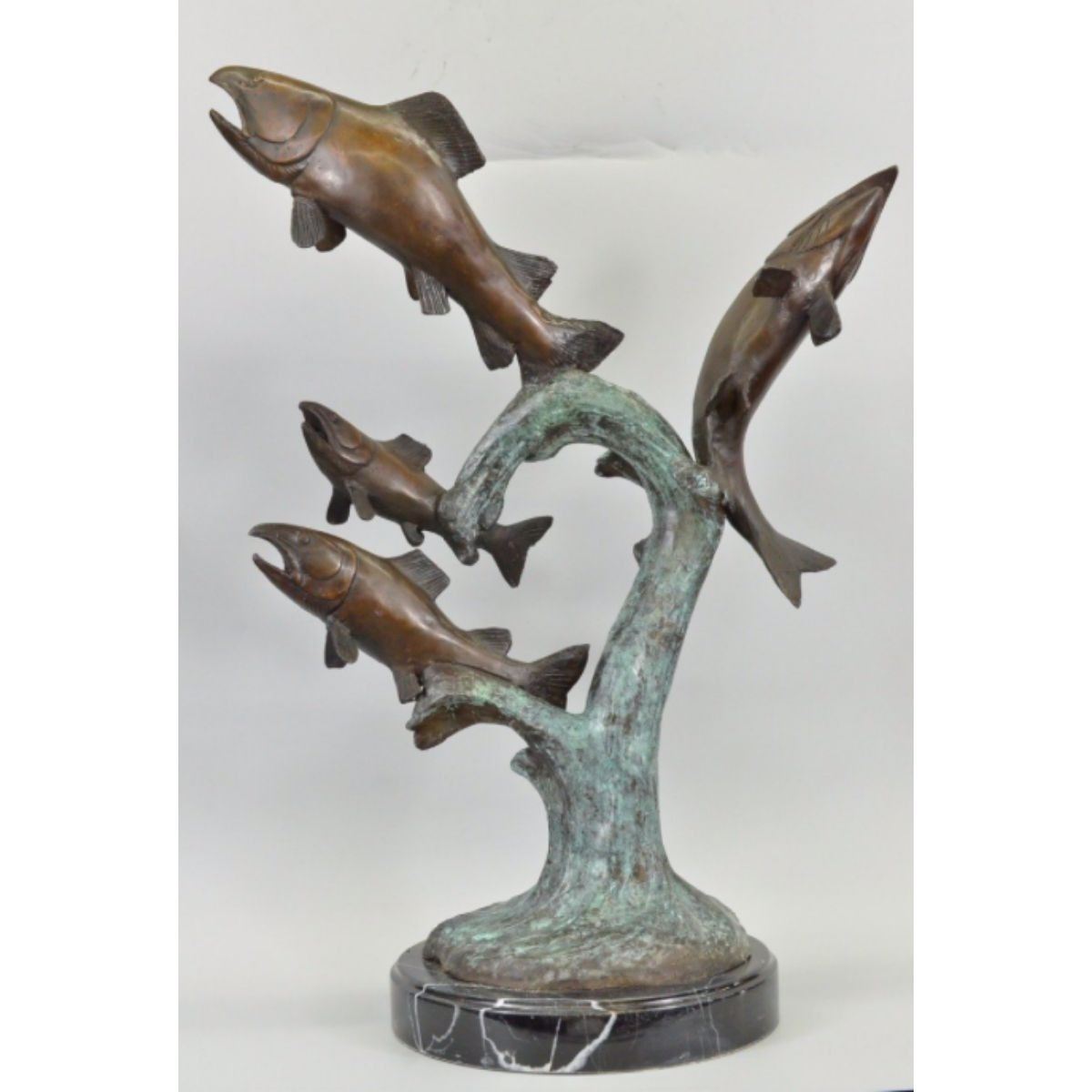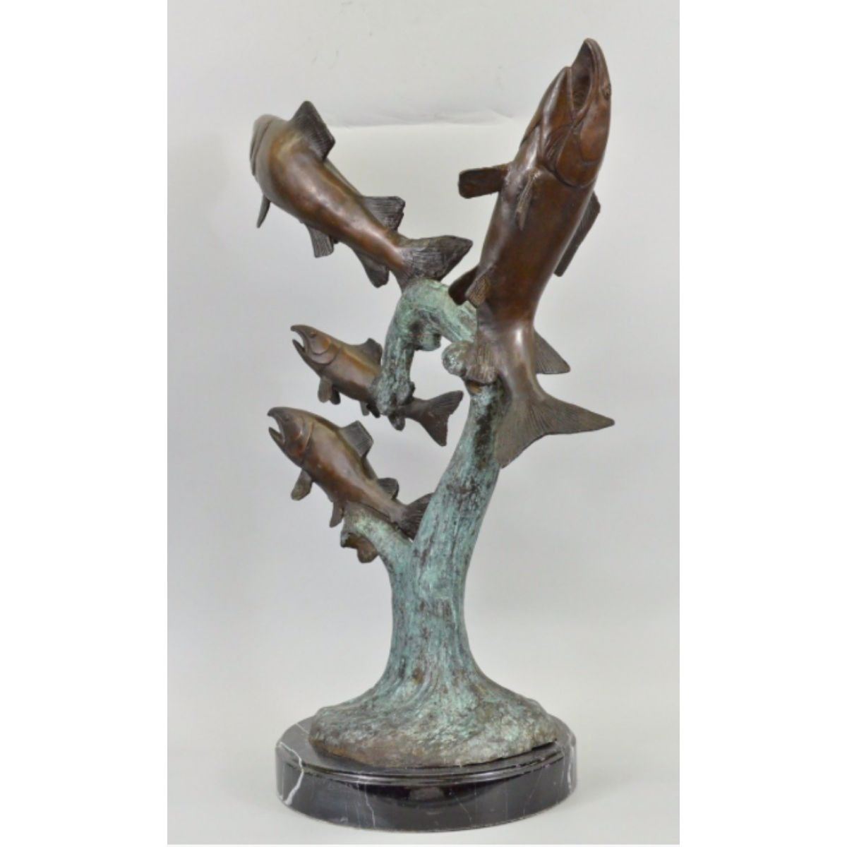Signed Marius, limited edition yachting, ocean fish sculpture. Lost wax casting method bronze with brown & green patina, mounted on a marble base. 25" H X 18" W. 26lbs.