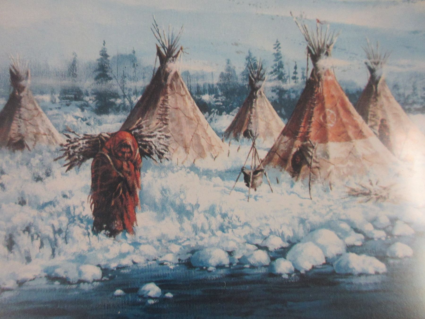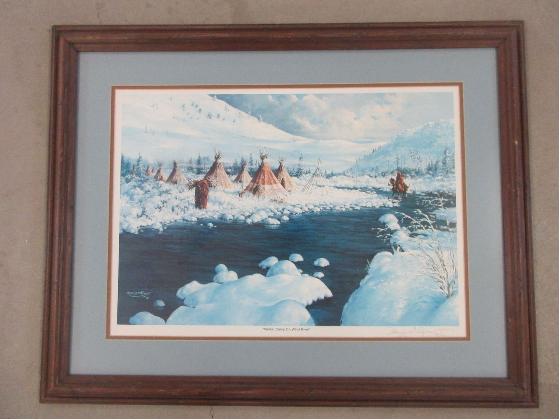 Signed Mark R Stewart 76 Print- "Winter Camp On Wind River"- 30" X 24"