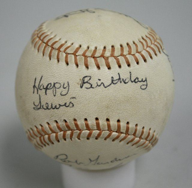 Ca. 1960s. In box. Inscribed, "Happy Birthday Lewis" with 7 signatures.