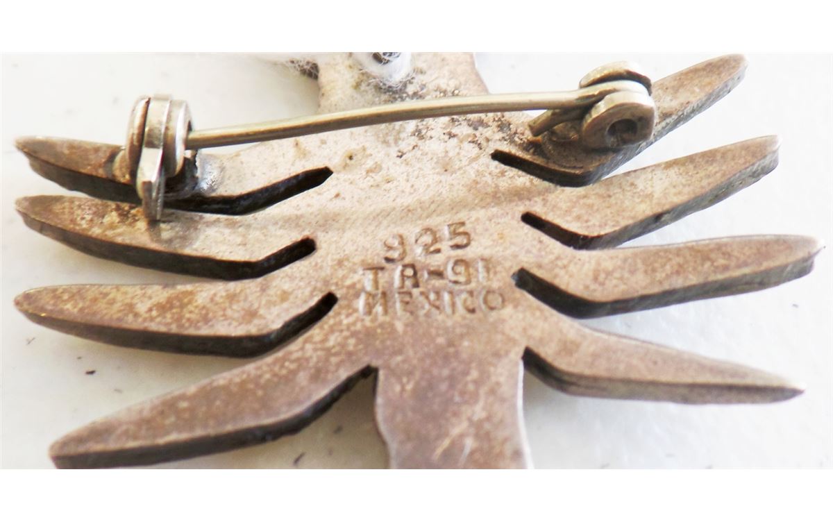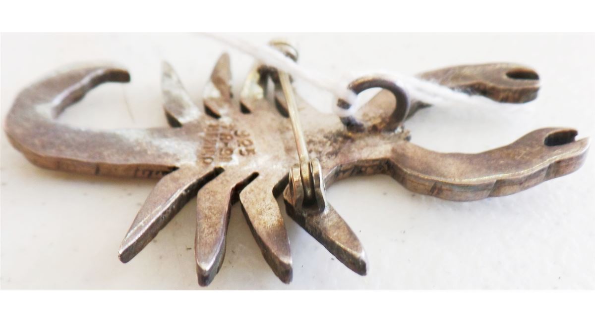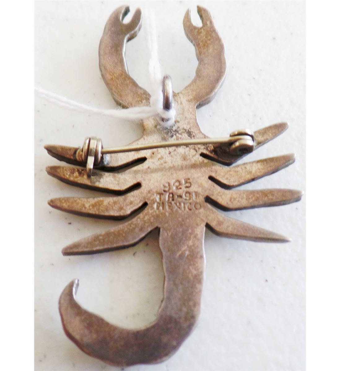 Signed Mexican Taxco Scorpion Pin or Pendant. Sterling silver. Item weighs 18.9 grams. It is approx. 2 1/2 " x 1". From Mexico. Condition: Used, nice patina, see images. Shipping: $14.50.