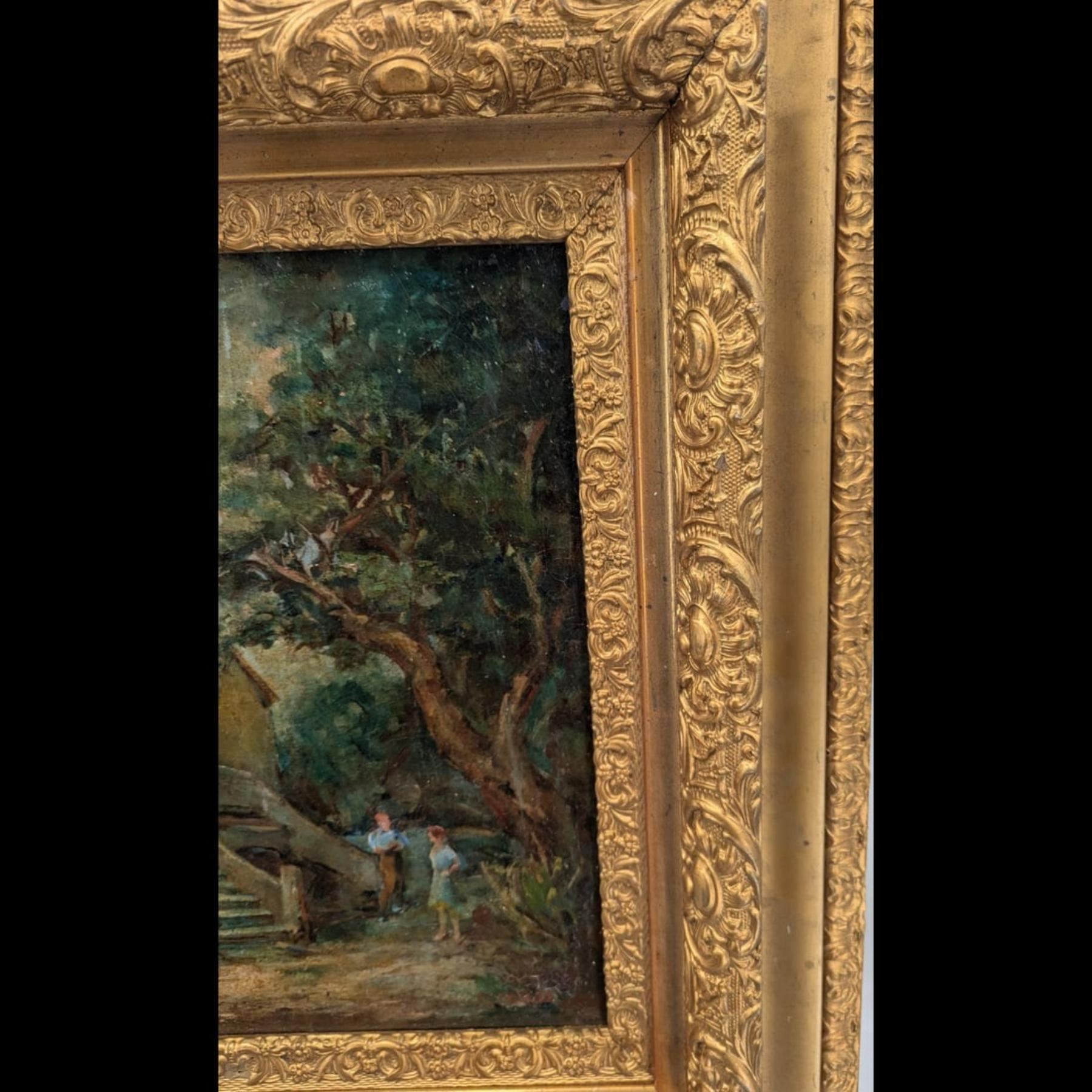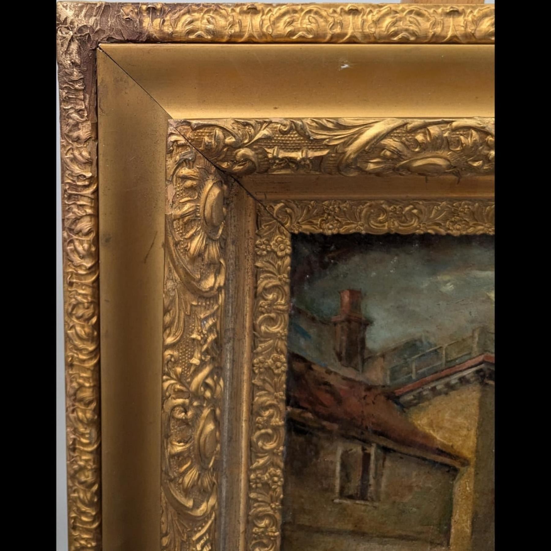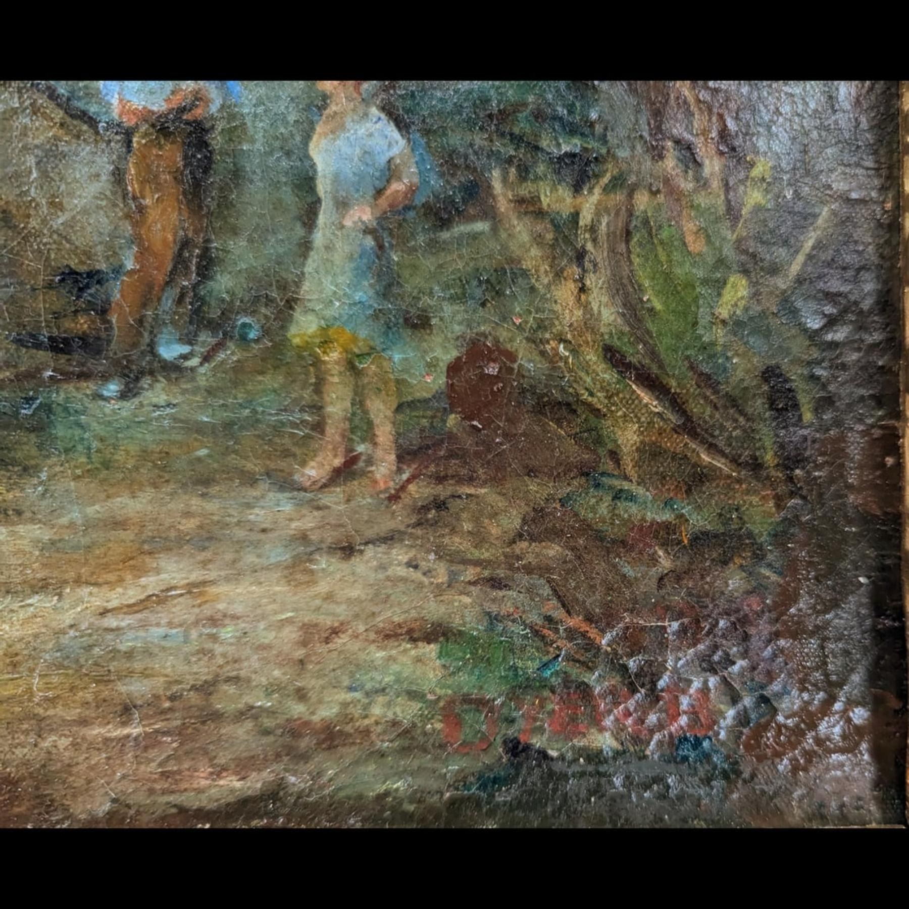 Signed Mid 20th Century French Artist B Dyer Oil On Canvas Scenic Painting With Gilt Frame
