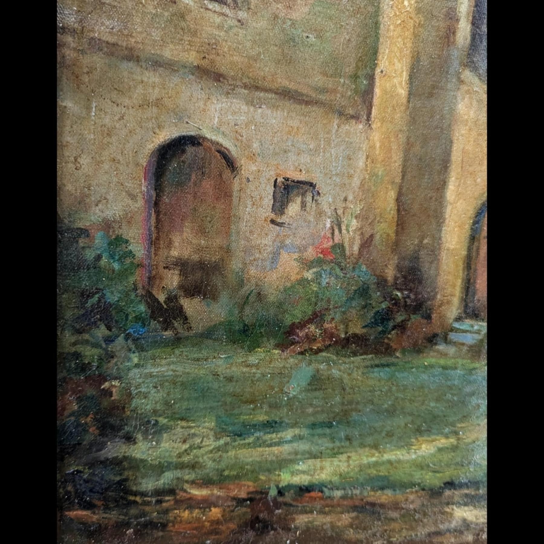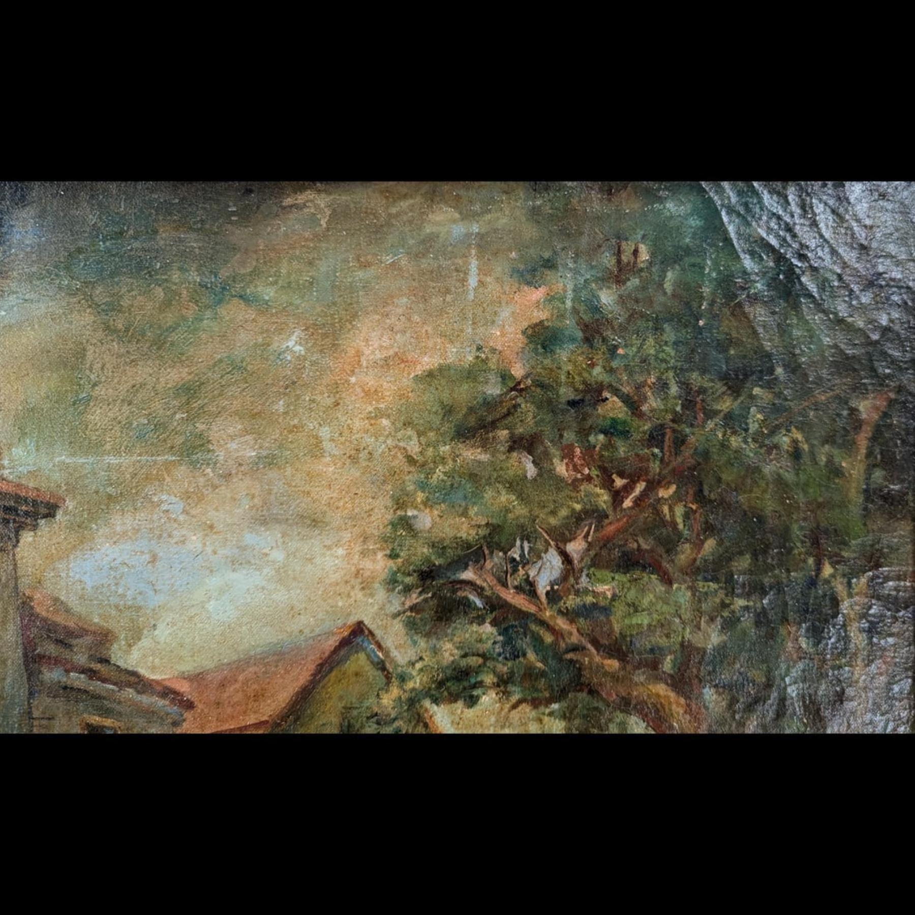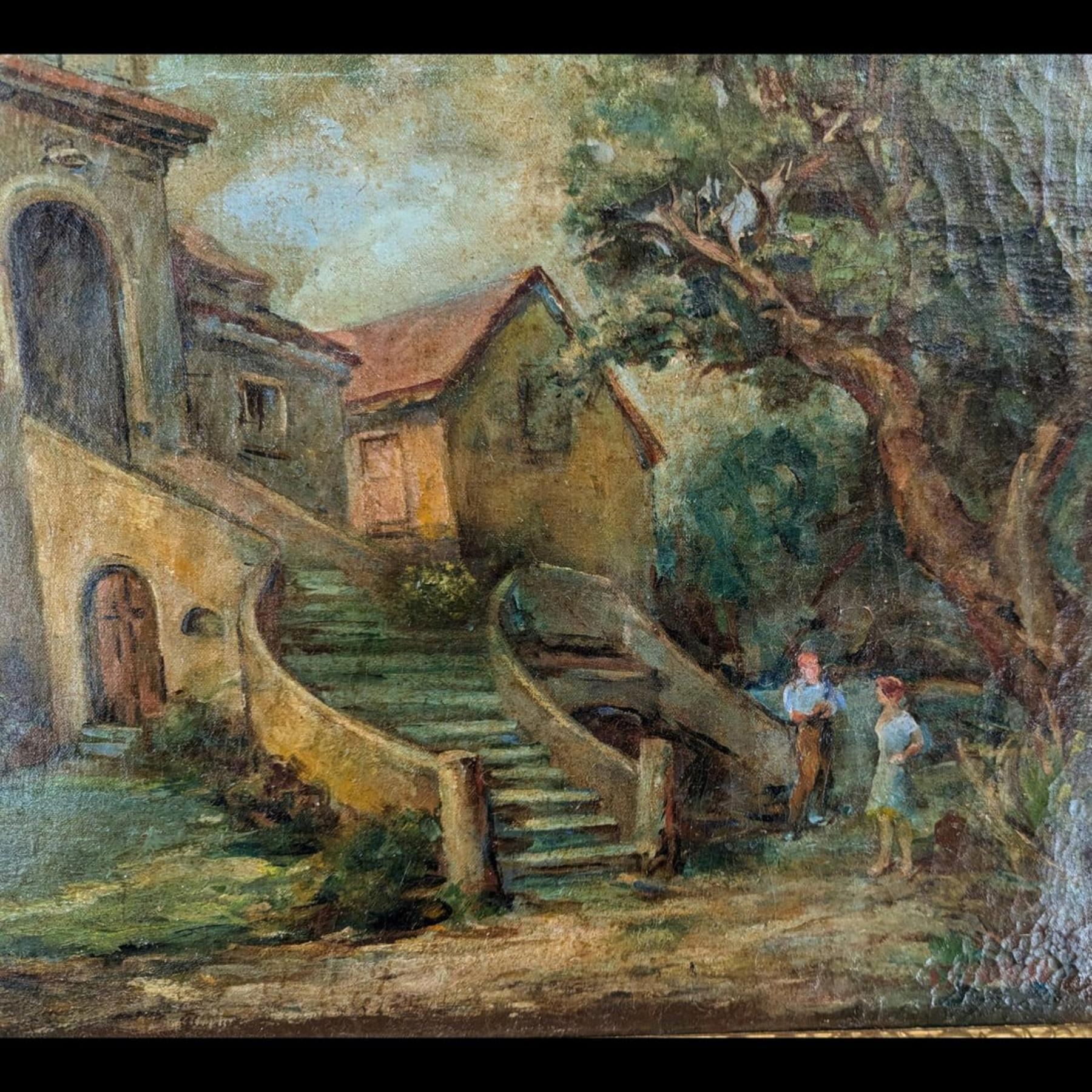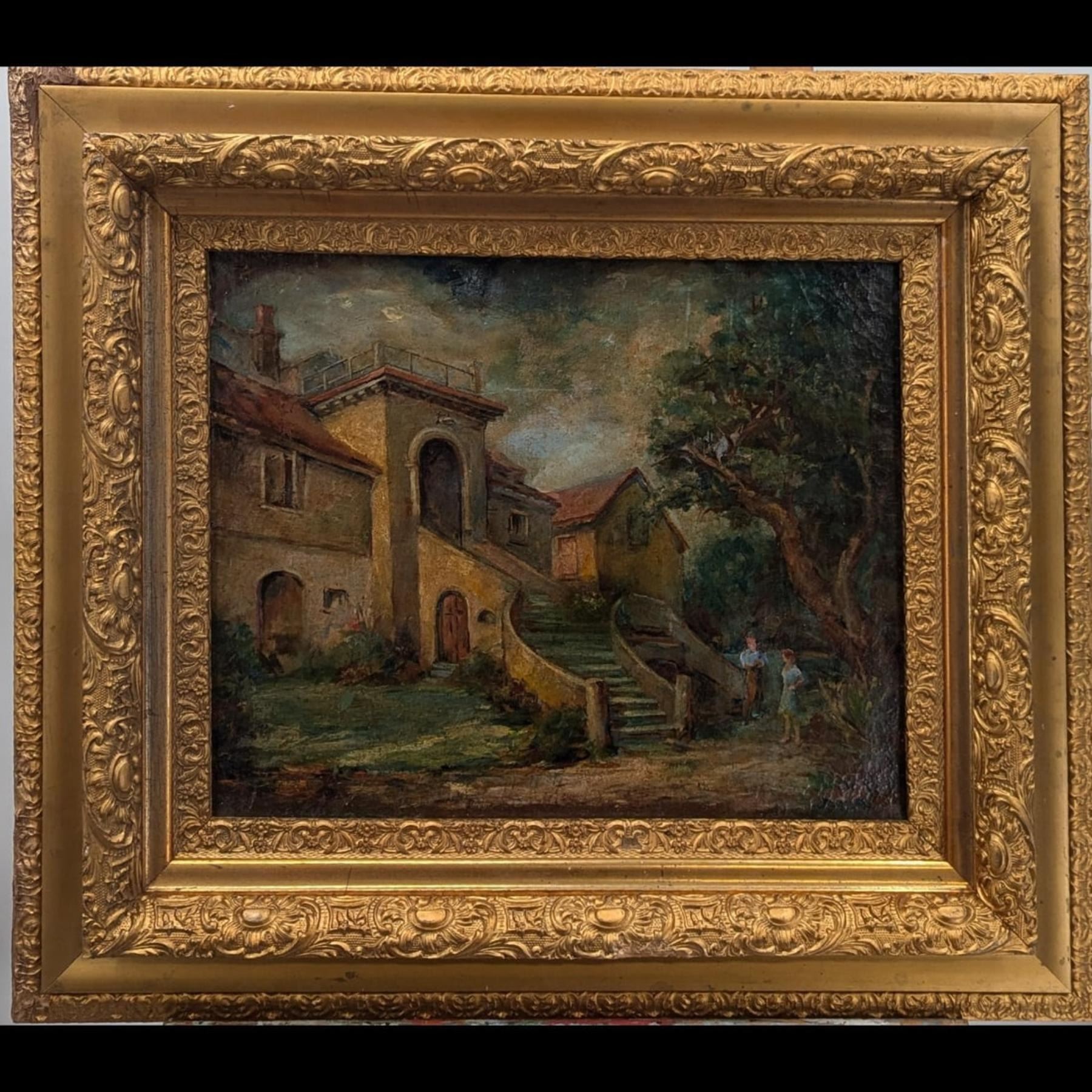 Signed Mid 20th Century French Artist B Dyer Oil On Canvas Scenic Painting With Gilt Frame