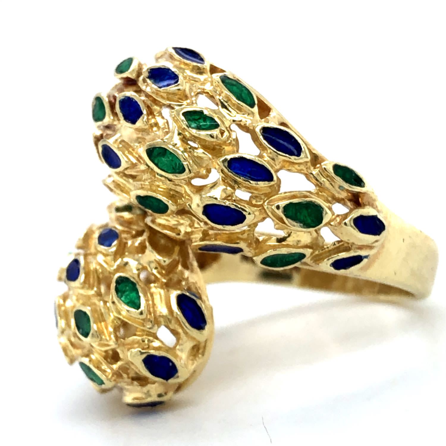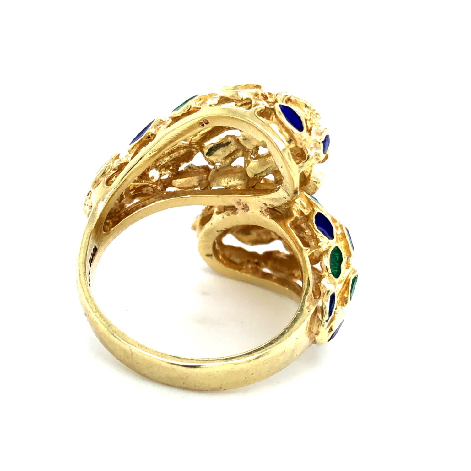 DESCRIPTION DETAIL: Middle Century Enamel and 14k Gold Ring