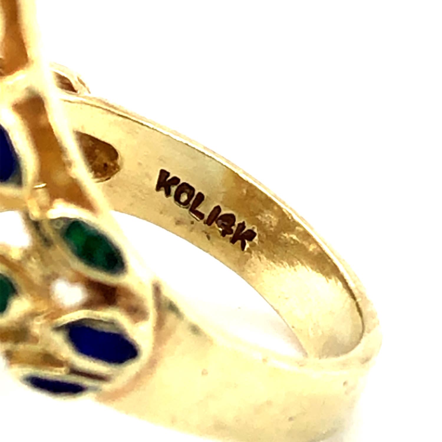 TITLE DESCRIPTION: Signed KOL 14k Mid Century Enamel Ring
