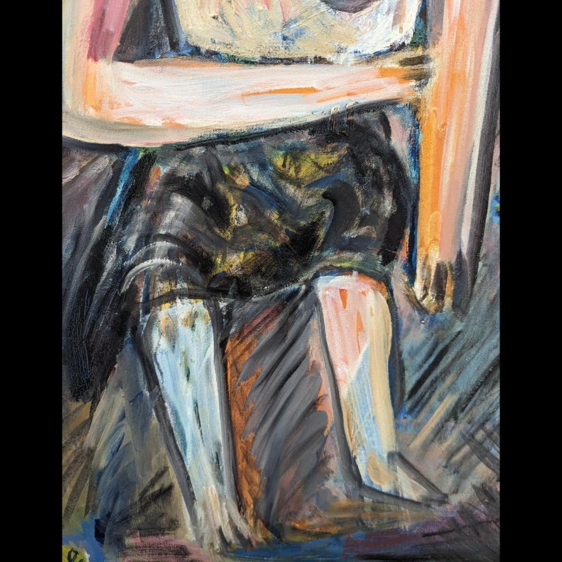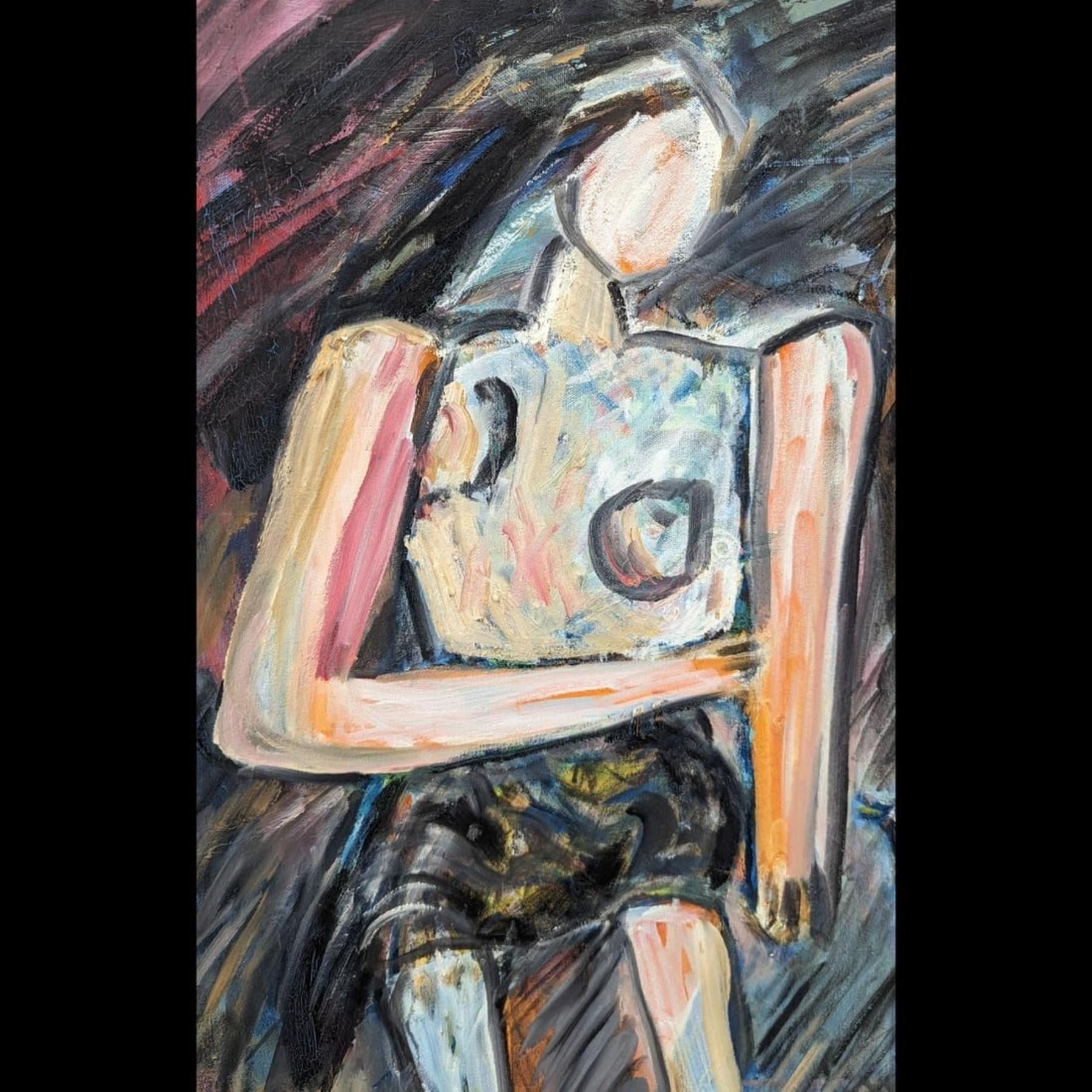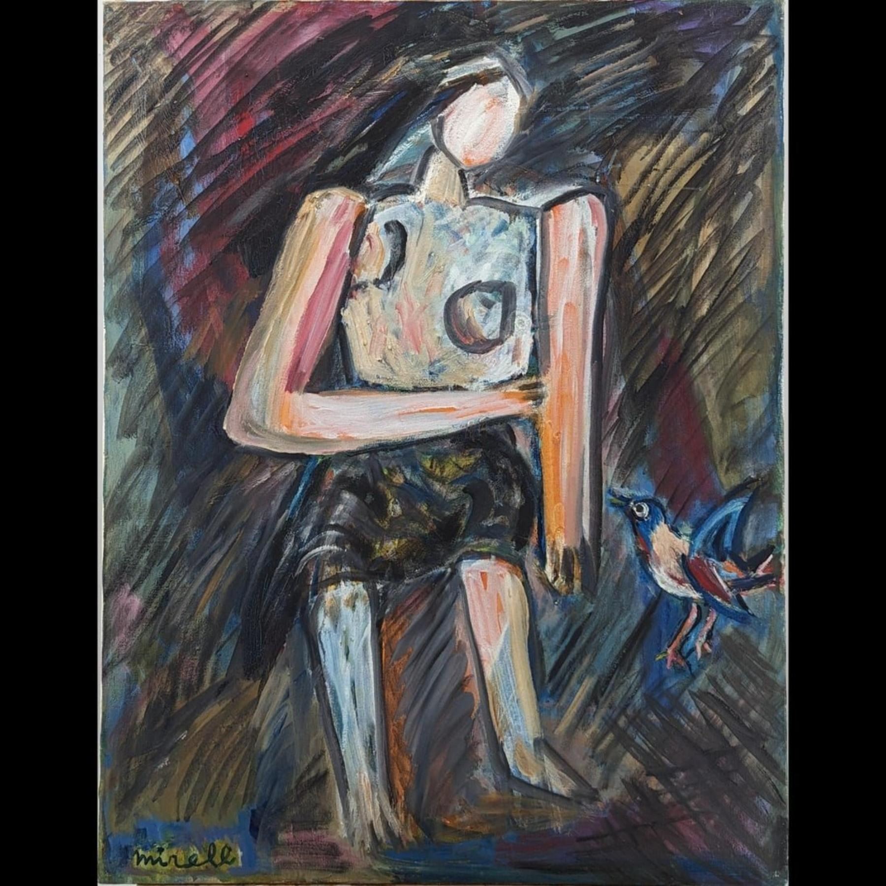 Signed "Mirell" Acrylic On Canvas Abstract Figural Painting. Measures approx. 30" X 24".
