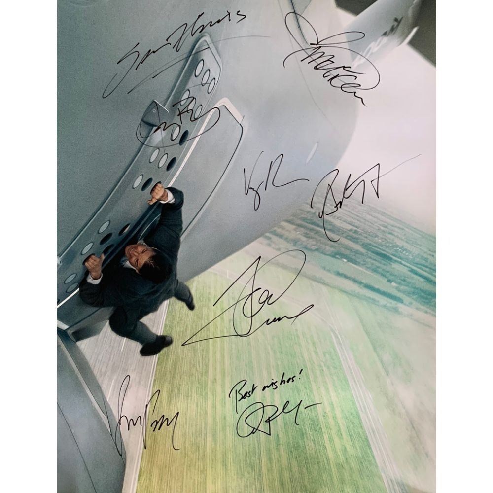 Signed by Tom Cruise, Jeremy Renner, Simon Pegg, Rebecca Ferguson, Ving Rhames, Sean Harris, Alec Baldwin and America Olivo