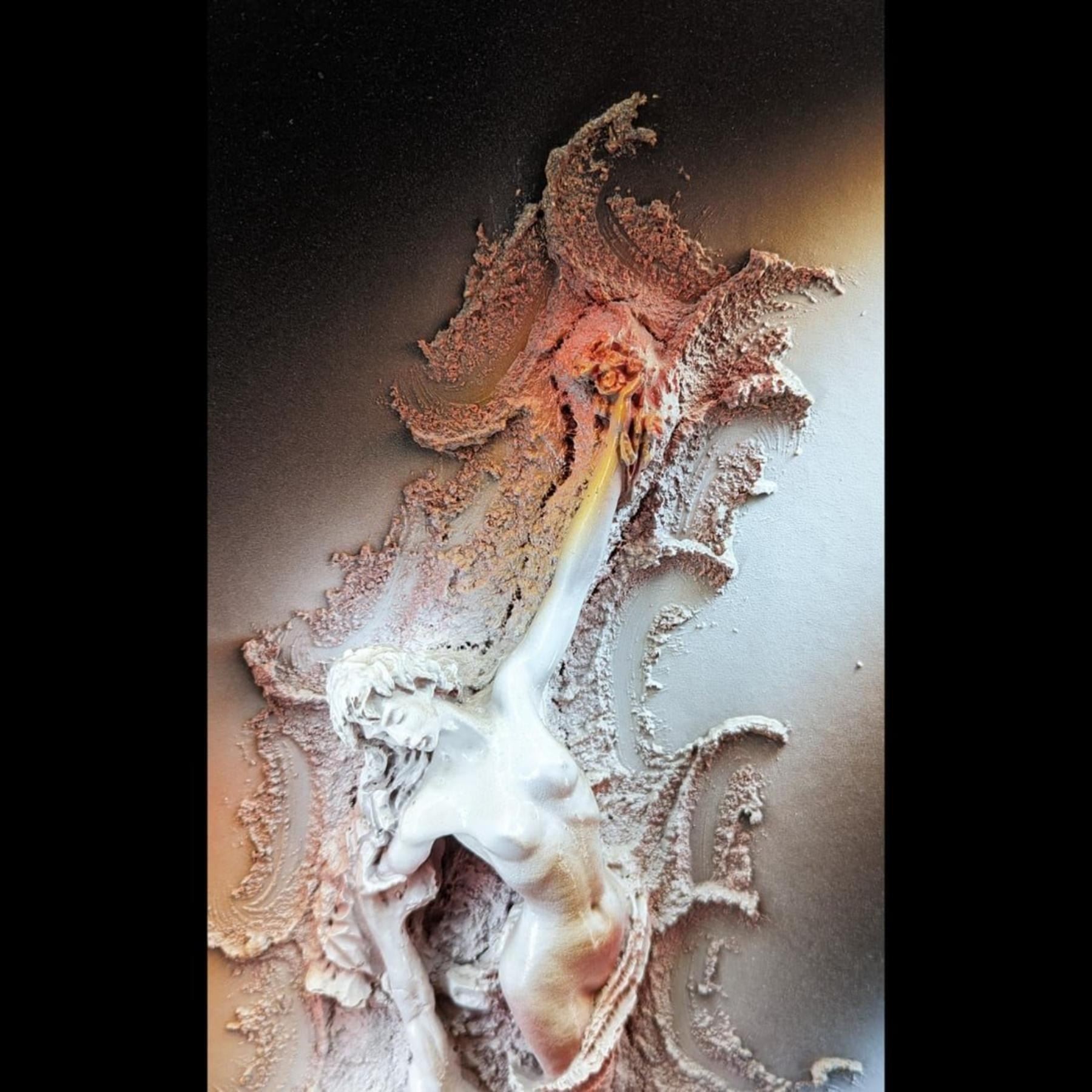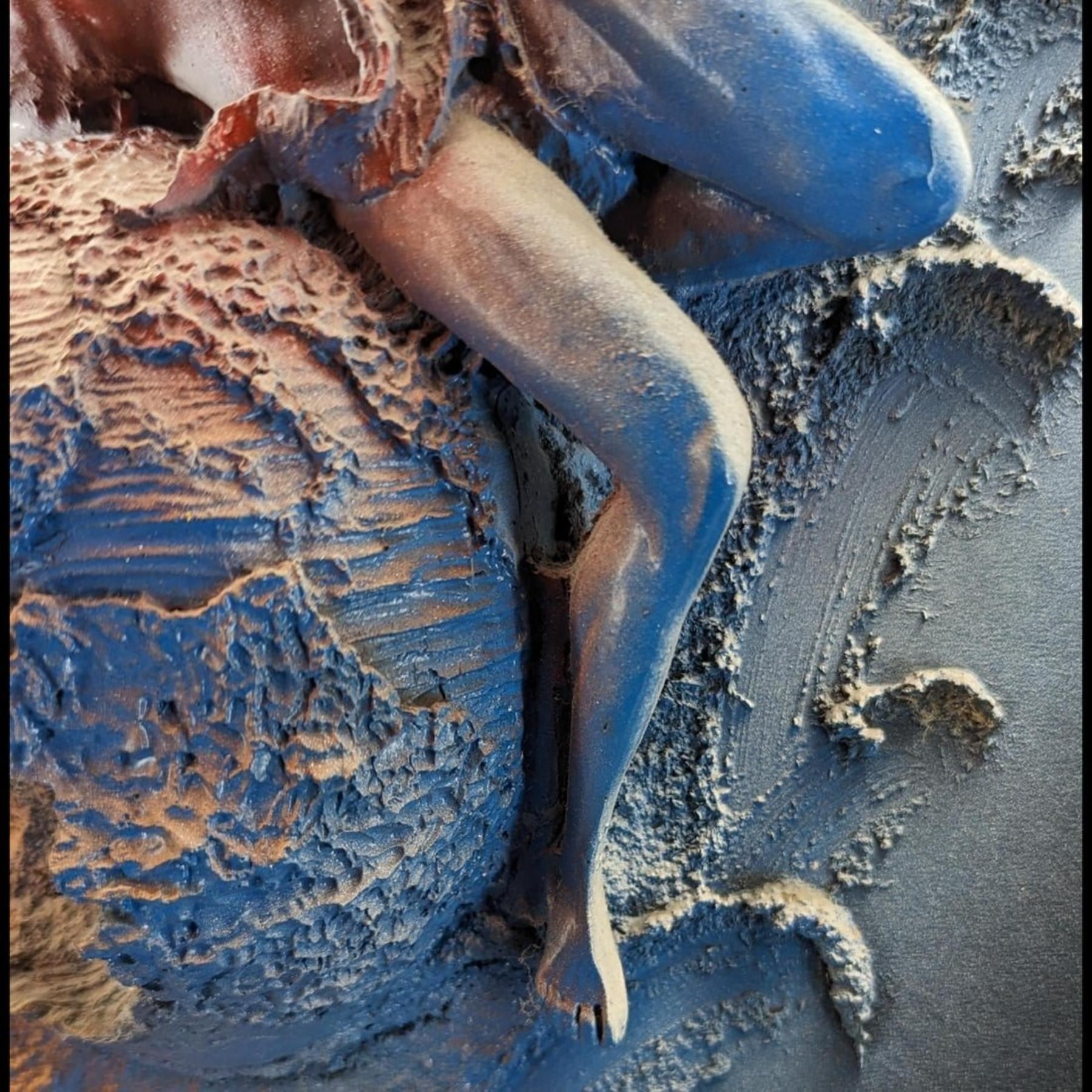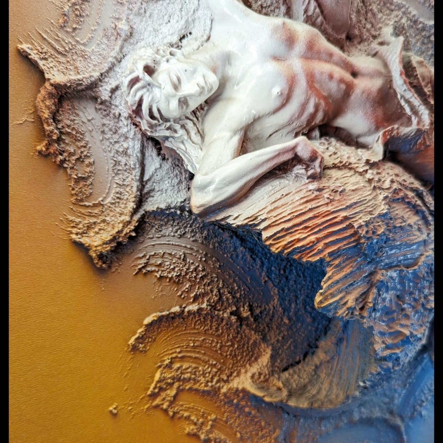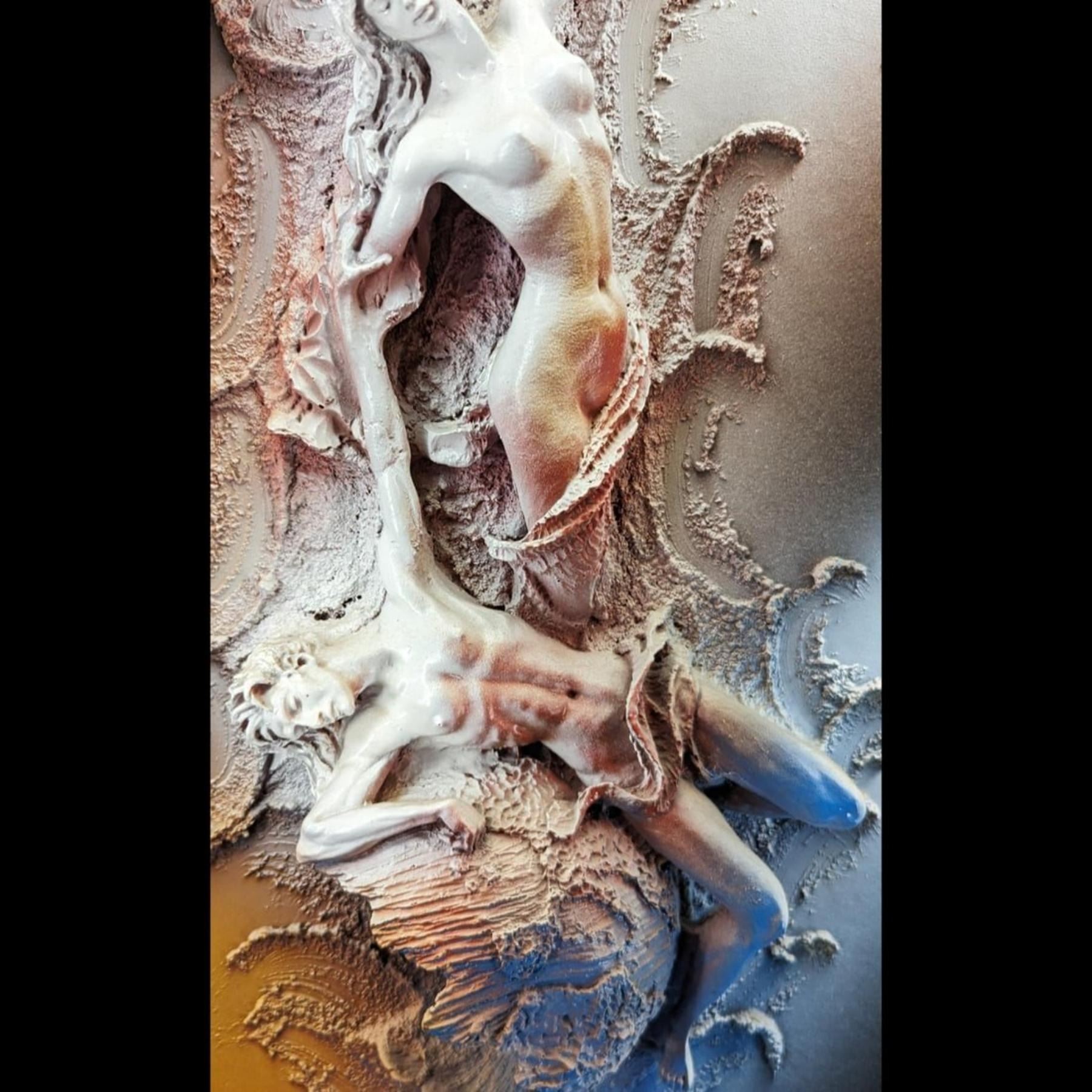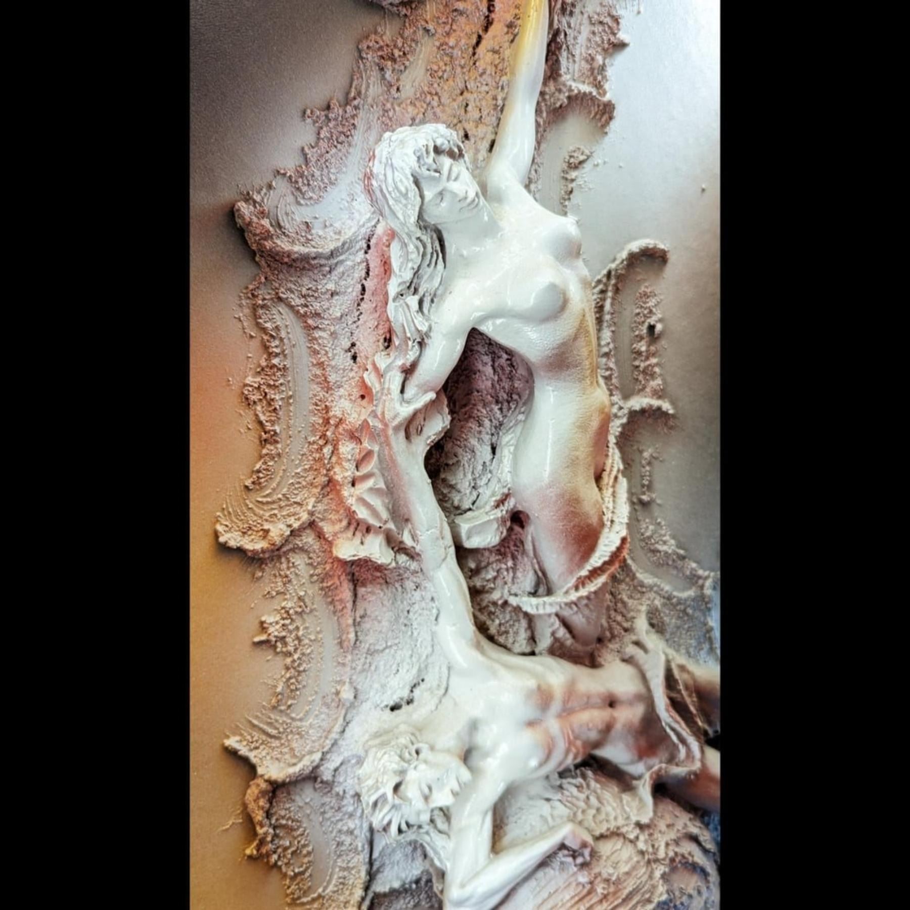 Signed Mixed Media Sculpture On A Printed Background In A Nice Frame . Measures approx. 29 1/2" X 26", Sight measures approx. 21" X 17".
