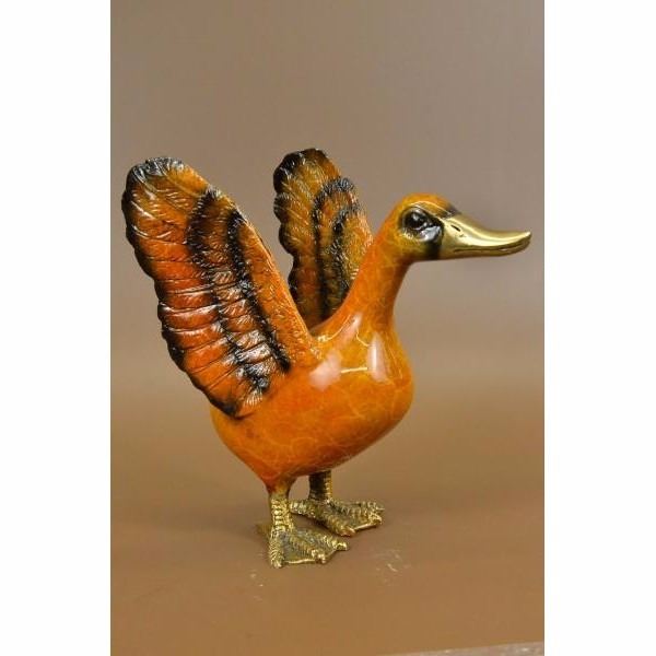 Delightful Duck Bronze Sculpture, After J. Moigniez .This bronze sculpture was produced using the Lost Wax casting method. The Lost Wax Cast method is the most precise metal casting technique in existence, ensuring exquisite detail of the original host model which is usually sculpted in clay or wax. This Lost Wax casting method is an extremely labor intensive and expensive process, but the end results produce a Heirloom Quality Masterpiece! Condition: This sculpture is in perfect condition. Bronze Dimensions :Height 9" x Width 8" Weight :5 LBS Inventory : 39-56626NA3793