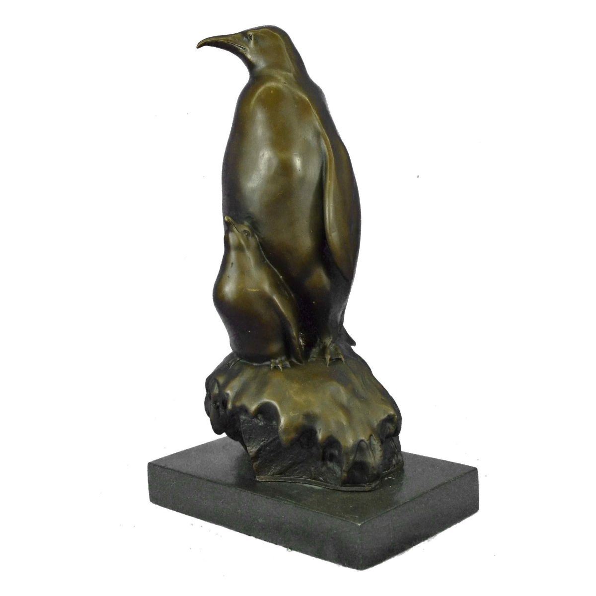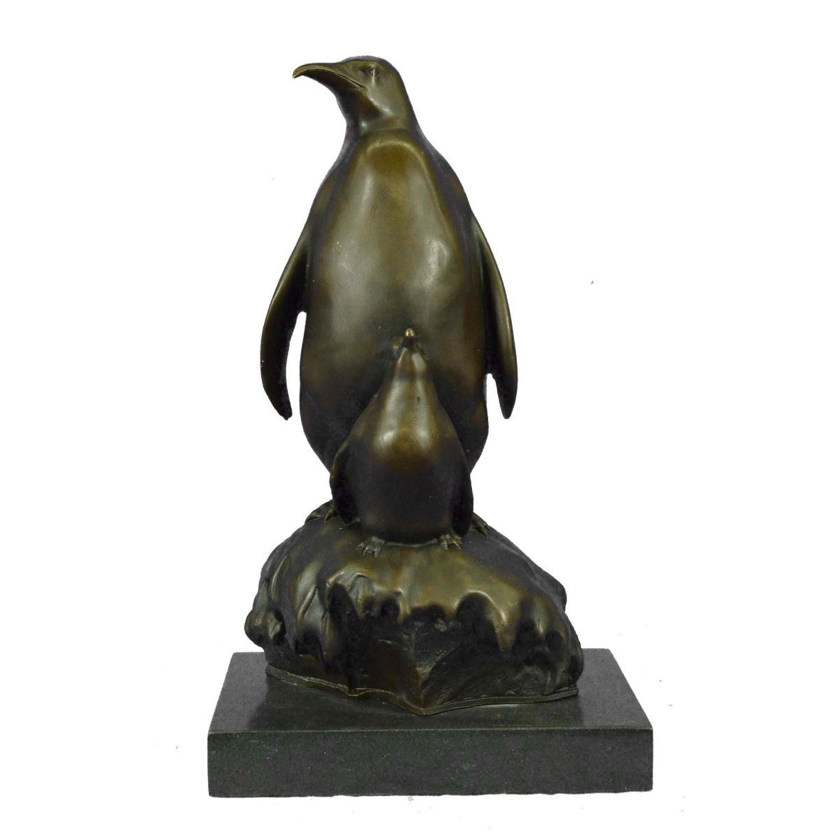 Penquin & chick sculpture. Lost wax casting method bronze, with brown patina, mounted on marble base. Signed Milo. 14" H x 8" W. 15 LBS Â
