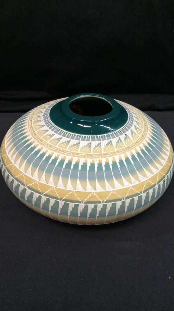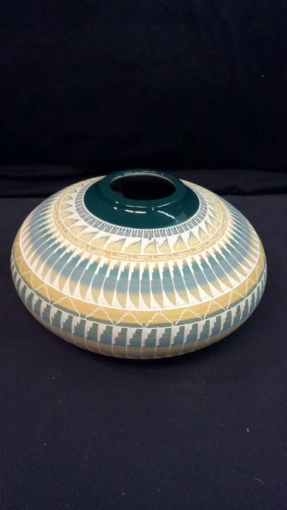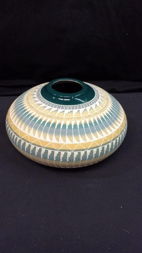 Signed Navajo Vase 4"T x 9"D Signed C. Smith Navajo