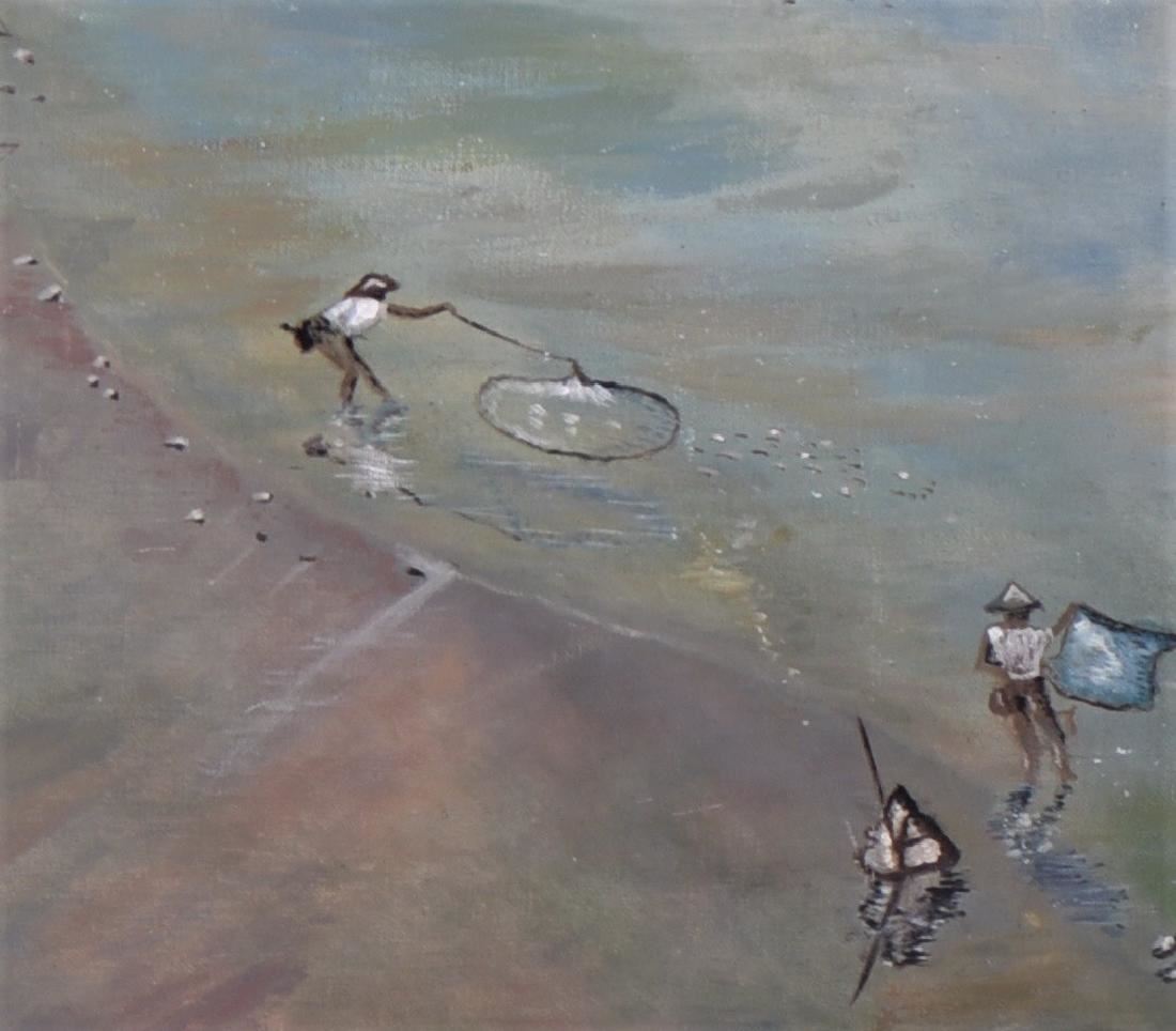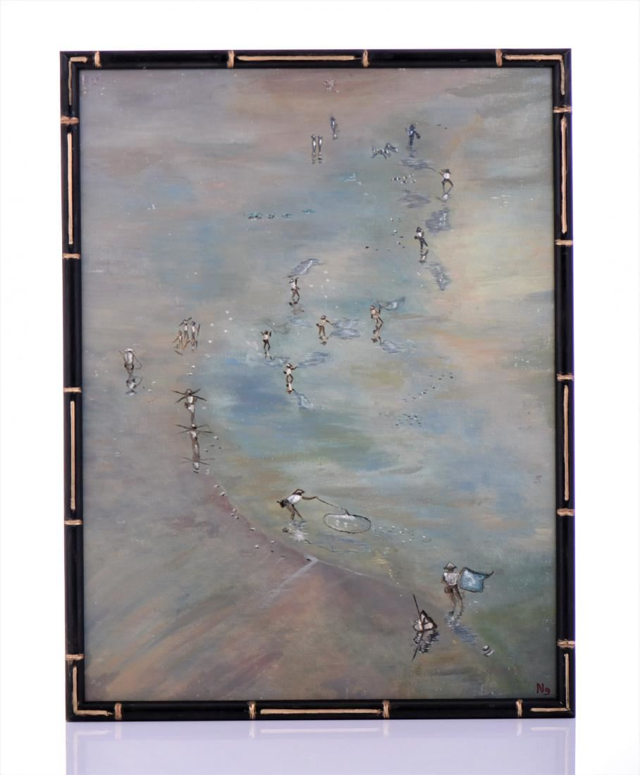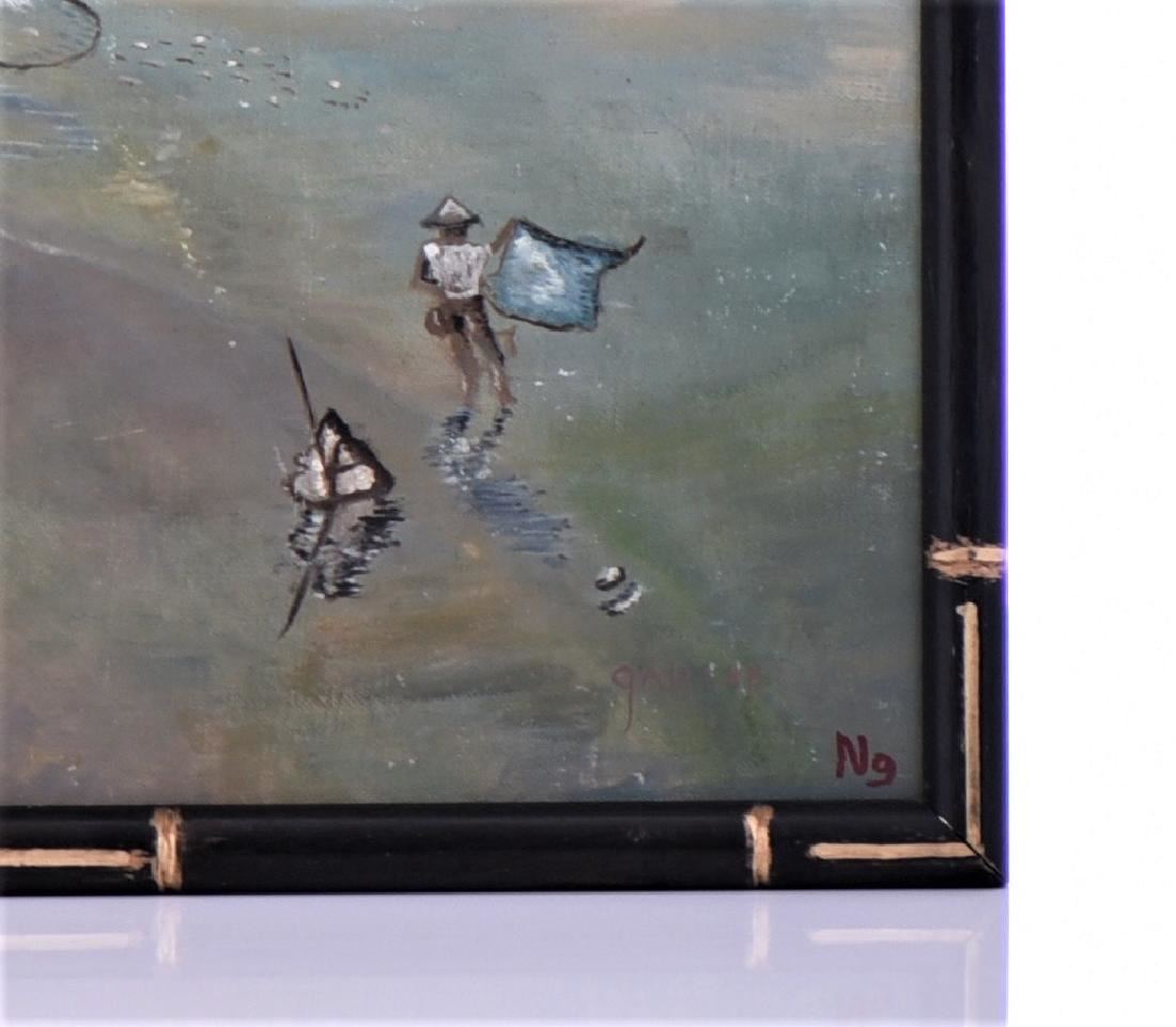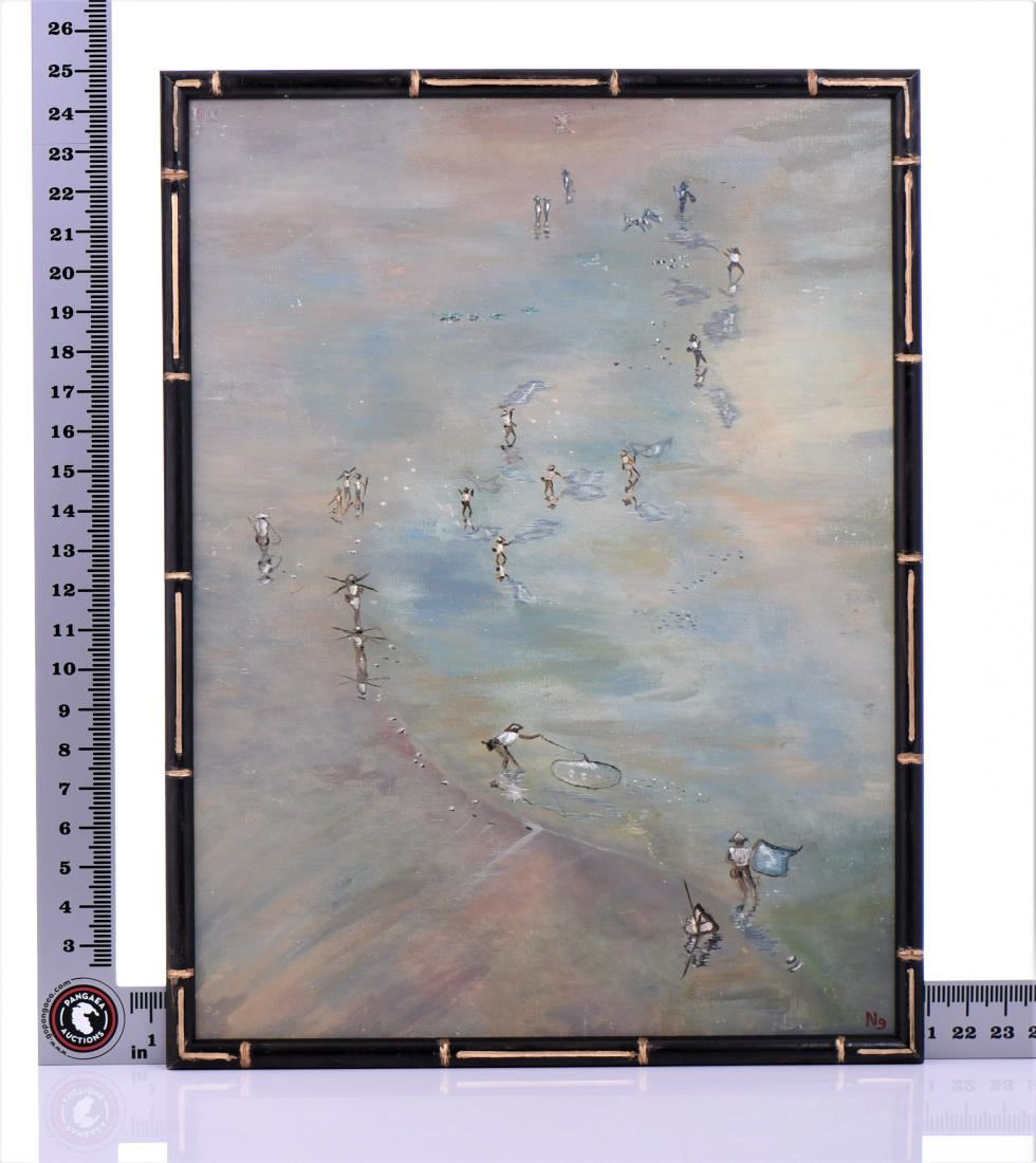 Signed Ng lower right, Original Modernism oil on artist canvas board. Ca 1960. Recently cleaned. Not sure if it is the work of Po Wan Ng. Estimated more than 50 yrs old. (Pangaea Auctions) Size and/or Weight: See Measurement Photo. (Photos Represent The Lot Condition.)
