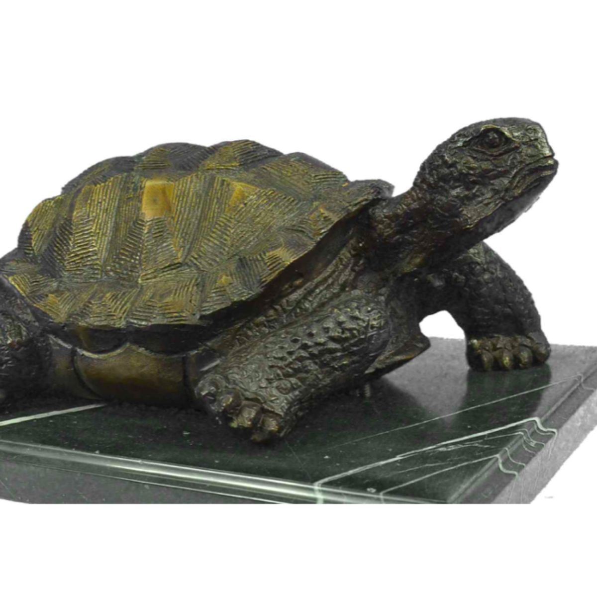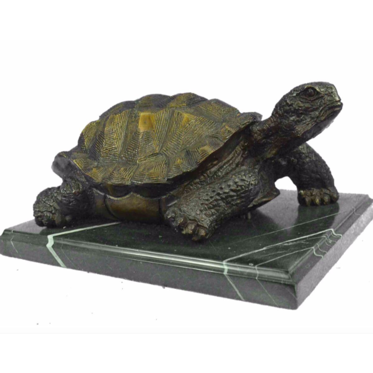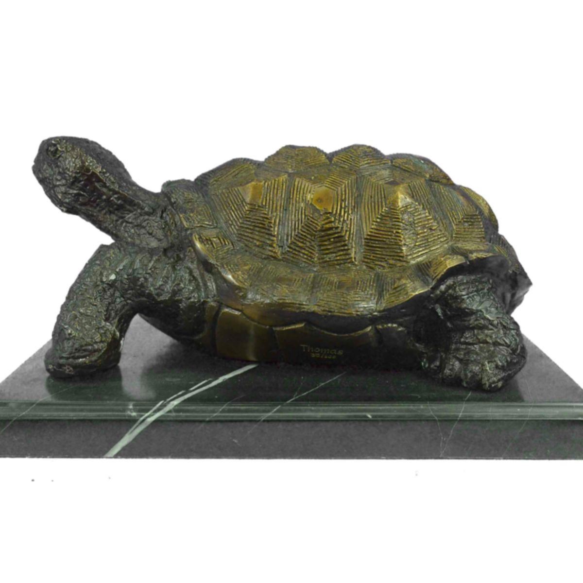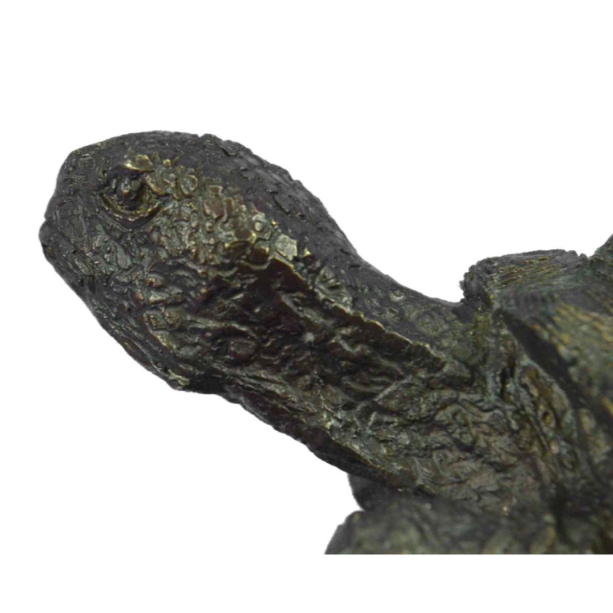 Signed & numbered limited edition sculpture of a turtle, tortoise. Lost wax casting bronze, with brown patina, mounted on a marble base. 6" H X 13" W. 20 lbs.Â