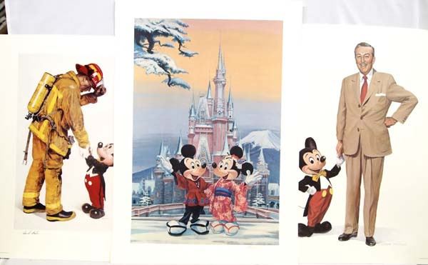 Signed & Numbered Partners Disney Prints by Boyer, measure 18'' x 23'', comes with COA, 1995/2500, #1 Hand Signed Firefighter and Mickey Mouse #2 Mickey and Minnie in Japan #3 Mickey and Walt Disney comes with COA 1995/2500, hand signed by Boyer #4 Mickey and Minnie in Japan 24/2000 hand signed by Boyer