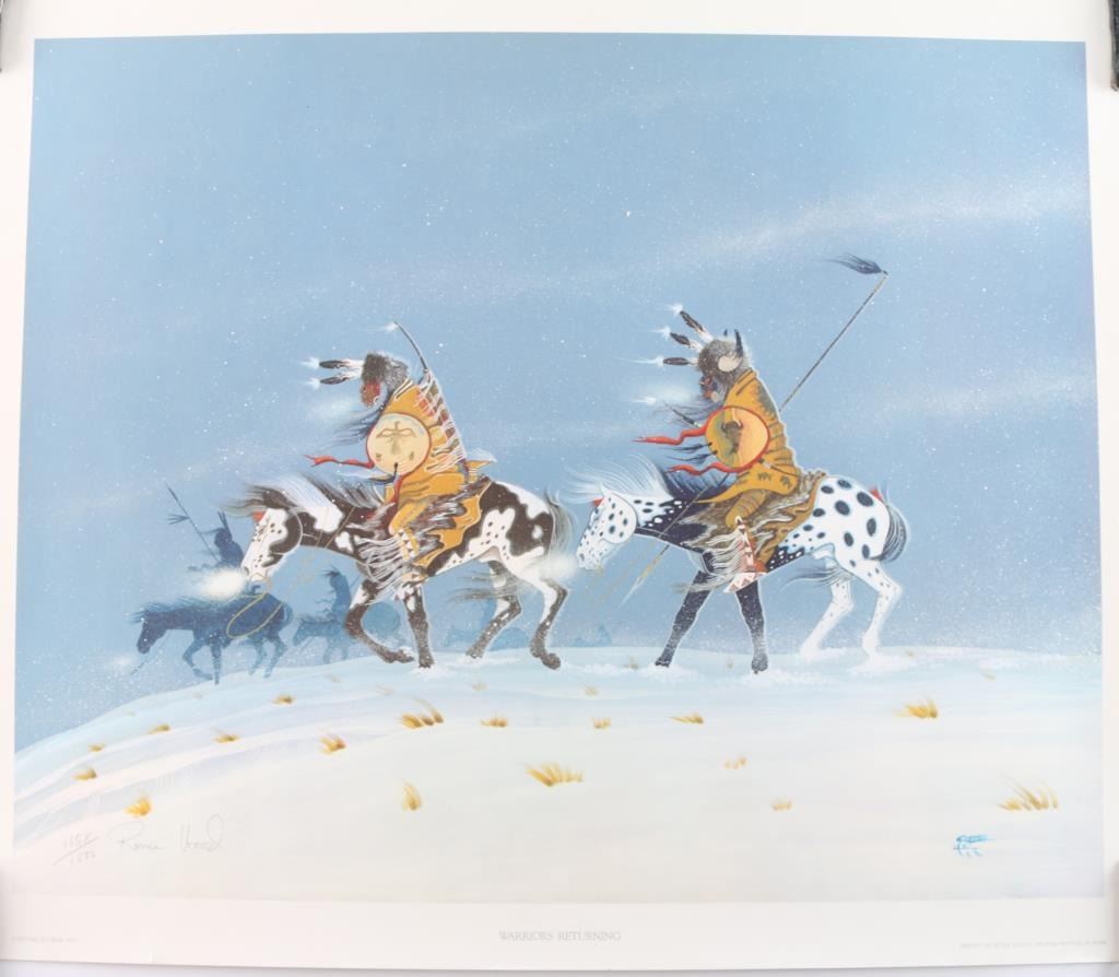 Entitled Warriors Returning. Measures 29 1/2" x 24". Unframed. Artist's original signature in pencil in lower left corner. Numbered 1158 of 1500.
