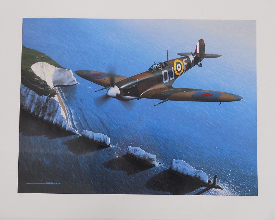 Up for your auction is a print by aviation artist Stan Stokes. It is 30 inches wide x 23-1/2 inches tall. It has always been stored flat and is in excellent condition. It is signed on the bottom left and numbered on the bottom right "672 / 950."