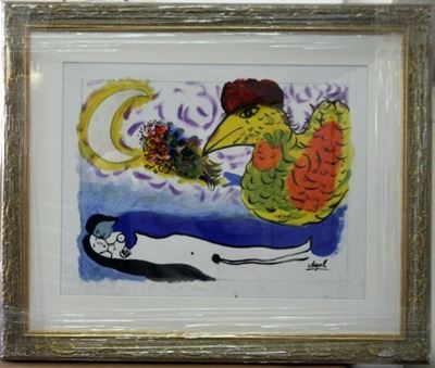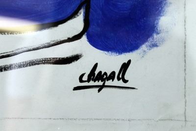 attributed to Marc Chagall, bears a signature. Unframed dimensions approx 11x14,