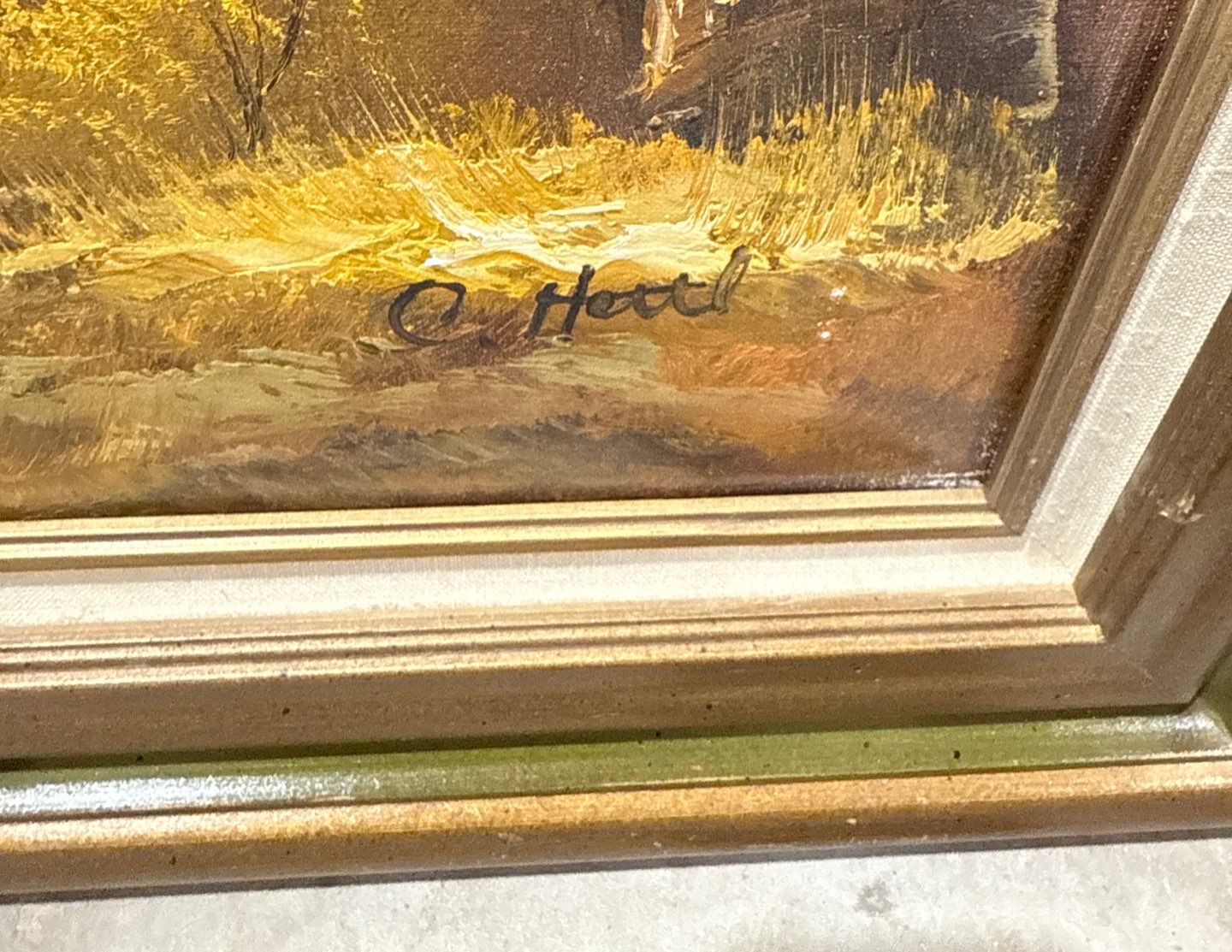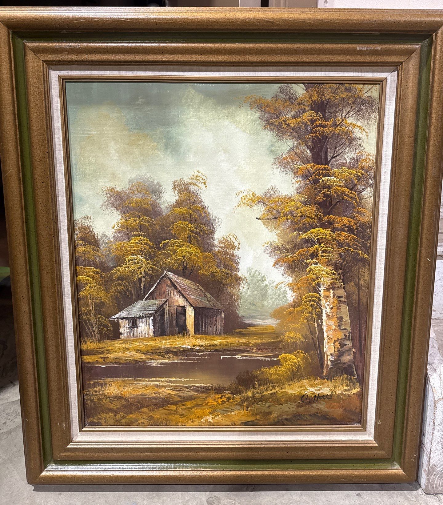 Signed Oil on Canvas Titled "Cottage in the Wind" by C Hettl 28x33"tall