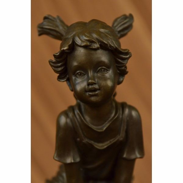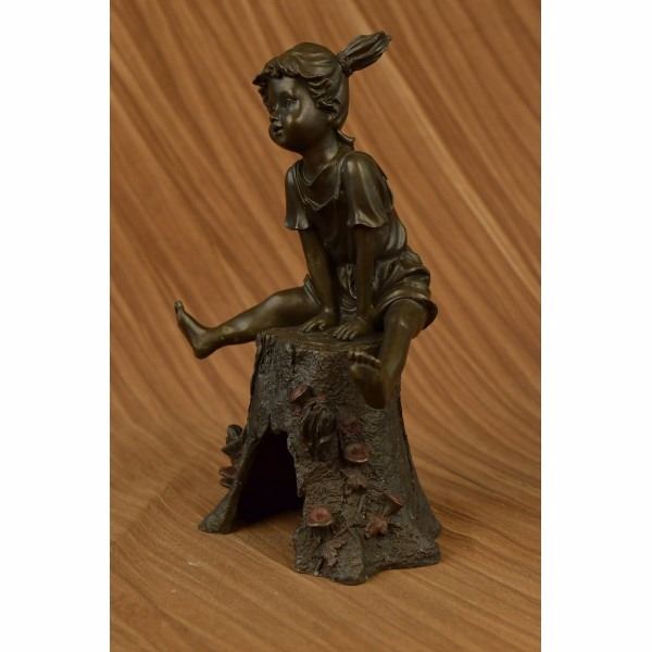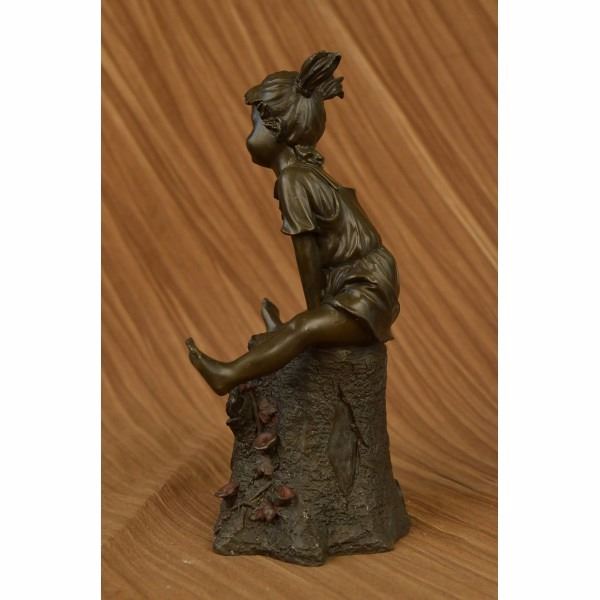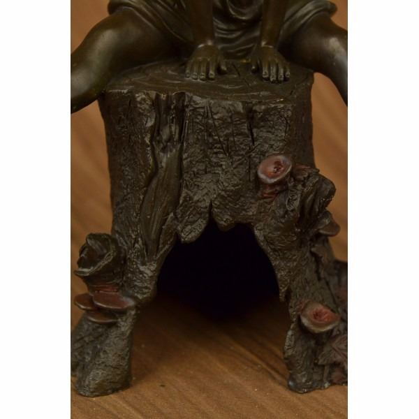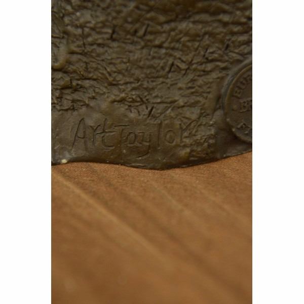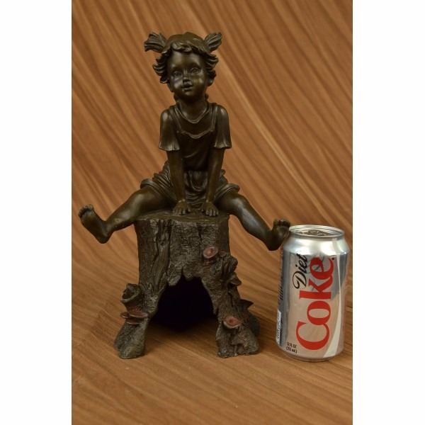 Rather hard to find "Girl on A Tree Stump" in a bronze with multi color patina. Signed by the artist Art Taylor on the rear. Bronze color is actually a shade or two darker than what the photo shows as the bronze had some reflection that caused the photo's to be lighter than actual. This piece has a nice medium patina. The girl has both hands are wrapped around a branch and the other hand with fingers out stretched Condition: This sculpture is in perfect condition. Bronze Dimensions :Height 12" x Width 8" Weight : 8 LBS Inventory : 51X24755715