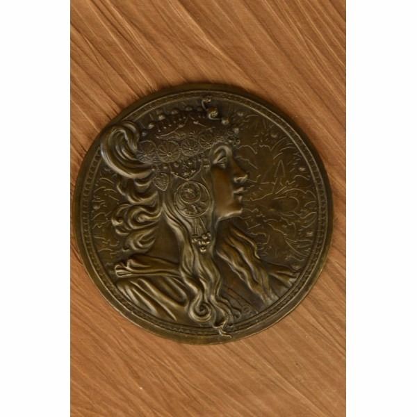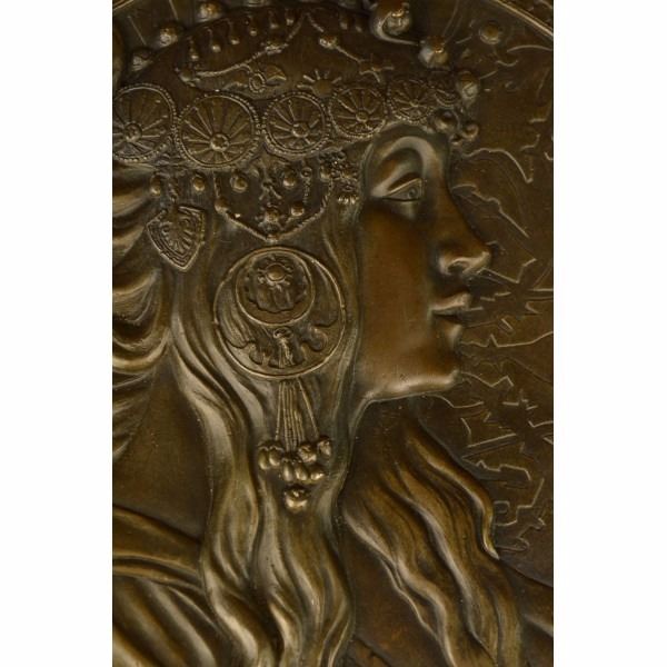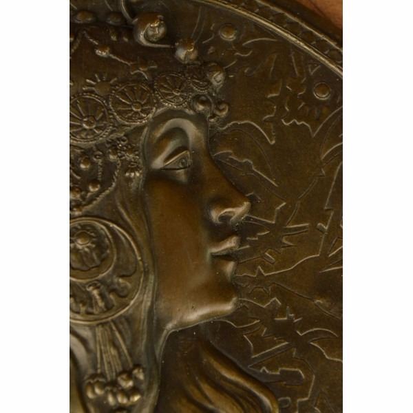 This medallion wall piece features the profile of a beautiful Egyptian Princess. Her long hair brushes past her shoulders. Her head has a simple headpiece that shows on the side. The about 12 inch diameter is just the right size to make it a focal point or an addition to a wonderful collection of wall sculptures. The sculpture was created using the lost wax method. It is signedMilo. Condition : This sculpture is in perfect condition. Bronze Dimensions :Height 12" x Width 12" Weight : 6 LBS Inventory 41Y10104314