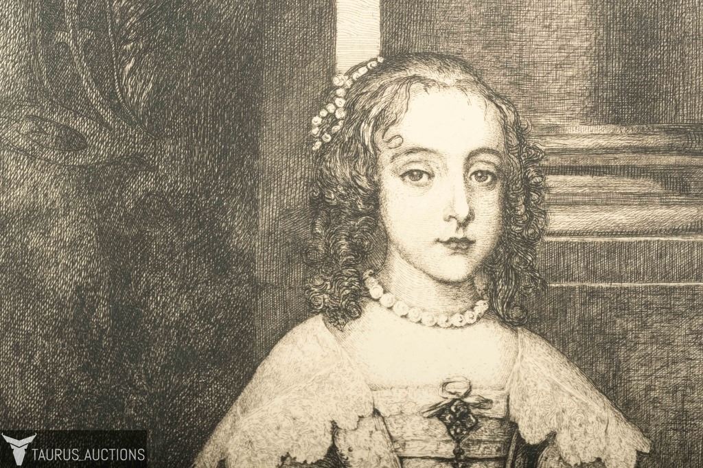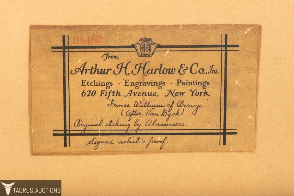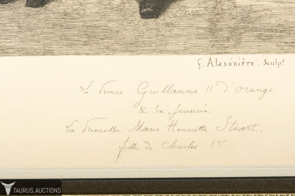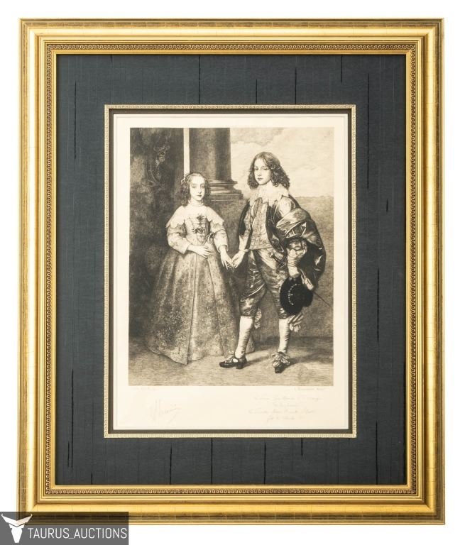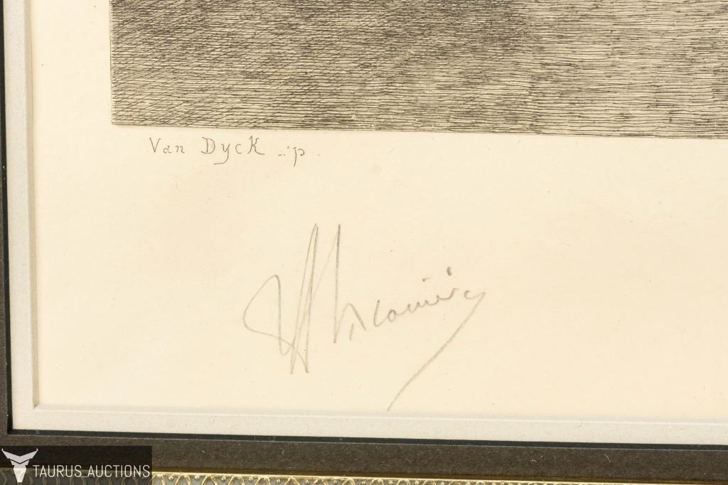 Item/Description: Pencil signed artist's proof etching of a portrait featuring William II, Prince of Orange and Princess Mary Henrietta Stuart, Portrait after: Anthony Van Dyck (1599 - 1641). Signed by engraver: Fabien-Henri Alasoniere (French, 1844-1914).