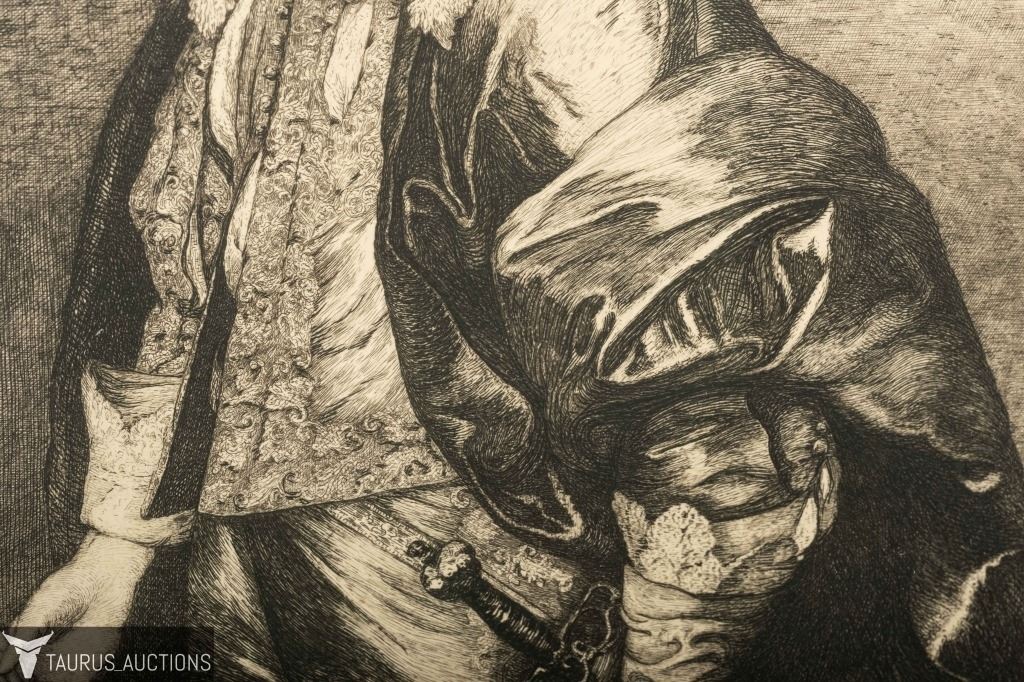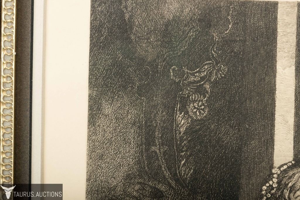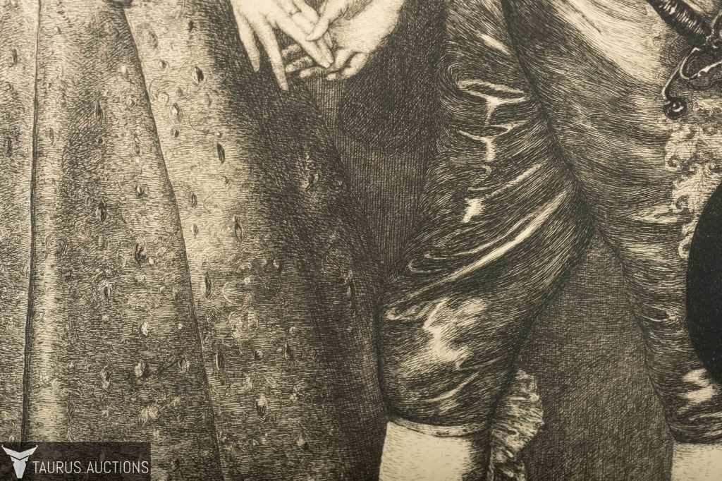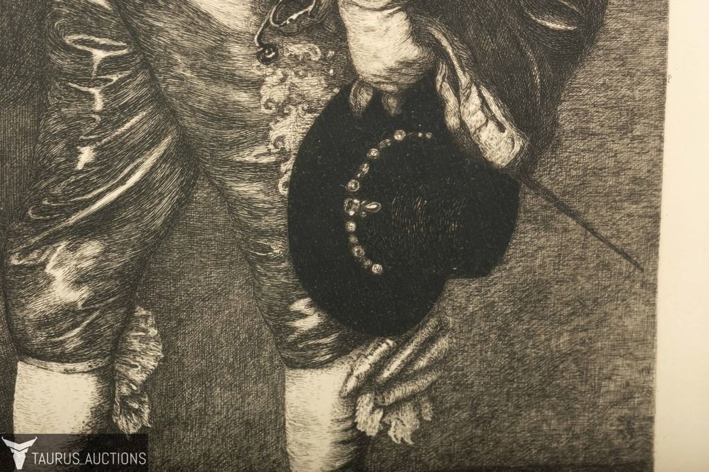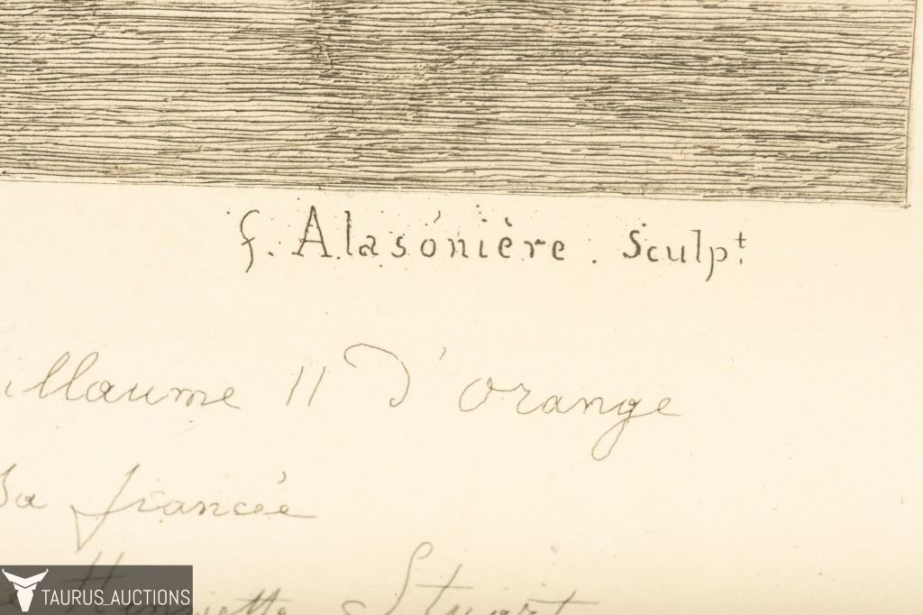Item/Description: Pencil signed artist's proof etching of a portrait featuring William II, Prince of Orange and Princess Mary Henrietta Stuart, Portrait after: Anthony Van Dyck (1599 - 1641). Signed by engraver: Fabien-Henri Alasoniere (French, 1844-1914).