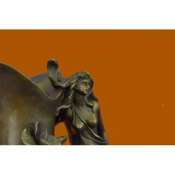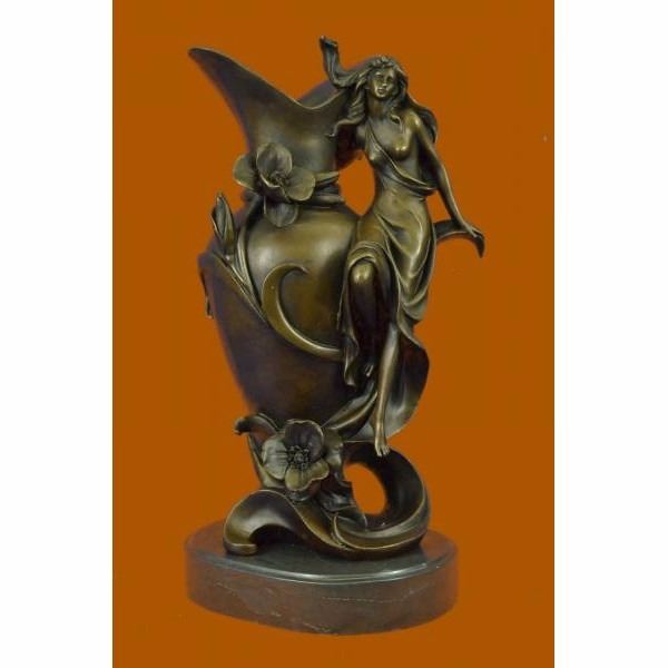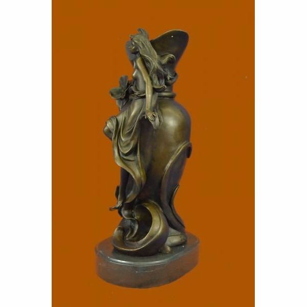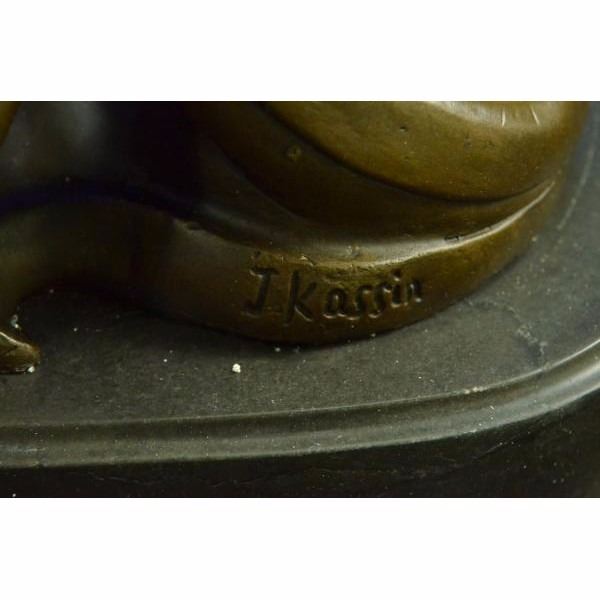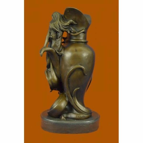 It is an elegant vase that will add a touch of beauty to any room. A nymph floats upwards and her long dress spirals around the vase. She curves her nude body around the vase. This sculpture will never go unnoticed. 100% bronze and handmade, this brown patina sculpture was cast using the "Lost Wax Method" and is signed J.Kassin. Condition : This sculpture is in perfect condition. Bronze Dimensions with Marble Base:Height 15.5" x Width 8" Marble Dimensions: Diameter 8" Height without base: 14" Weight : 23 LBS Inventory 19YRD132210391