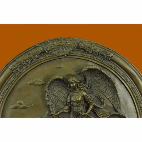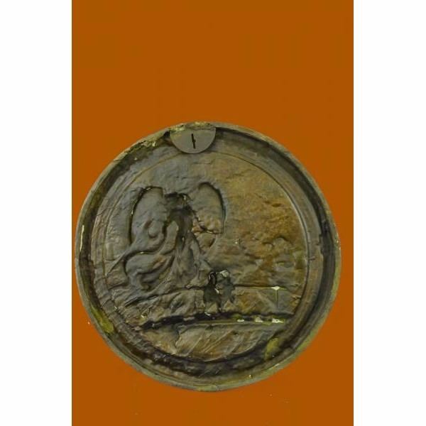 Oh, may there be such a heavenly angel whispering prayers into God's ear on our behalf! The classic bas relief made in Europe in our own finery -exclusive inspirational angel statue is a sure garden focal point, from feathered wings and earnest expression to children faces. This traditional, pure 100%, quality designer bronze Angel sculpture masterpiece is an inspired choice sure to bathe your garden in prayer. Another quality garden angel statue from European Bronze and signed by artist Jean Patoue ! Condition: This sculpture is in perfect condition. Bronze Dimensions :Height 23" x Width 23" Weight : 30 LBS Inventory 28YRD103819082