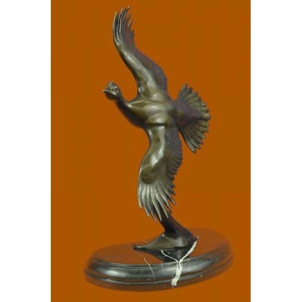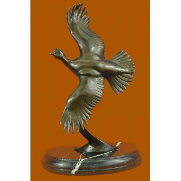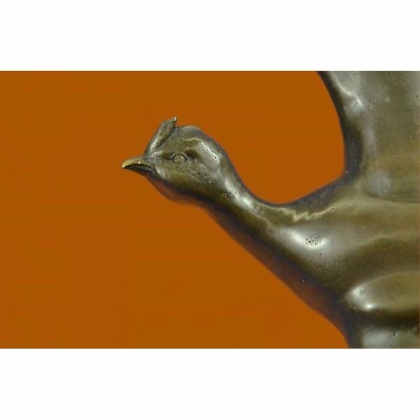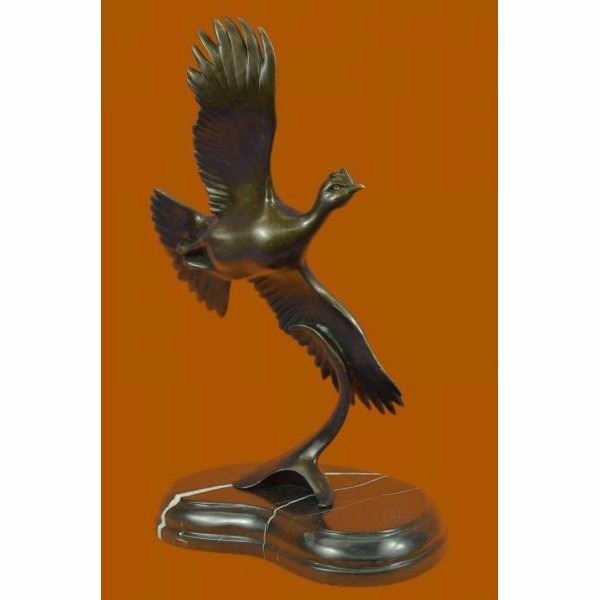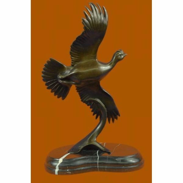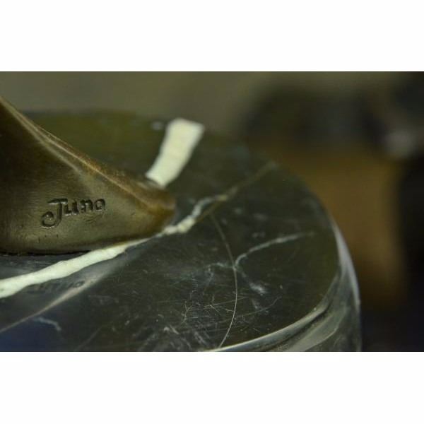 When you see this female California Quail, solid bronze statue take its place in your garden, it might just make you do a double take! Our mother California Quail bronze statue boasts a hand-applied classic sepia patina. Cast and crafted one piece at a time in the traditional lost wax method, which highlights its graceful wings and unique, elongated "topknot" and guarantees lasting beauty. Sure to be a focal point, this European Design heirloom-quality bronze garden statue conveys that you take the exterior of your home as seriously as the interior. Collect the whole bronze California Quail family! The sculpture stands on a black marble base and is signed by artist Juno. Condition: This sculpture is in perfect condition. Bronze Dimensions with Marble Base:Height 14.5" x Width 9" Marble Dimensions: Diameter 9". Height without base: 13 1/2" Weight : 11 LBS Inventory:28AL3195182