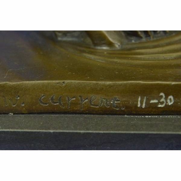 The sculpture shown here is an original bronze sculpture. It can be purchased as a limited edition sculpture in bronze (eleven of a series of 30). Part of a series of original contemporary American sculpture, this artwork handmade bronze sculpture was molded using the age-old method of lost-wax casting and stained with a brown patina finish for perpetuation. She is mounted upon a black marble base with American artist Current signature. Condition: This sculpture is in perfect condition. Bronze Dimensions with Marble Base:Height 10" x Width 18.5" Marble Dimensions: 18.5" X 8". Height without base: 9" Weight : 32 LBS Inventory :65YDZ01910056