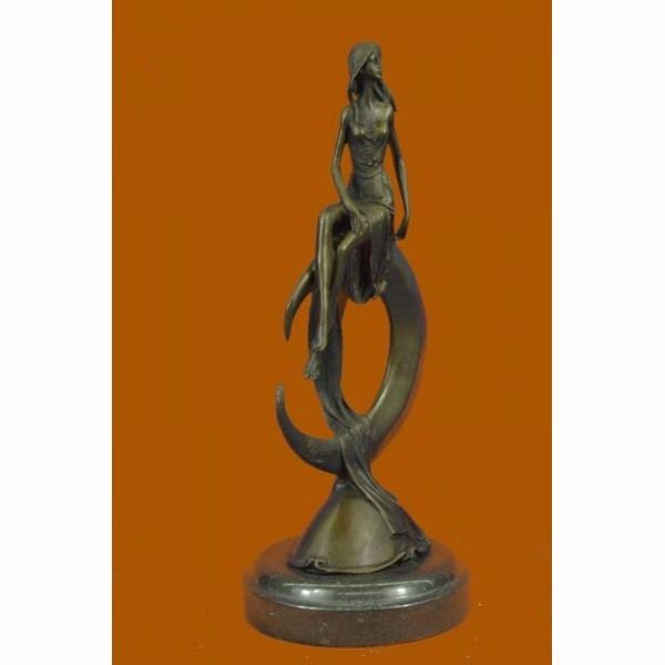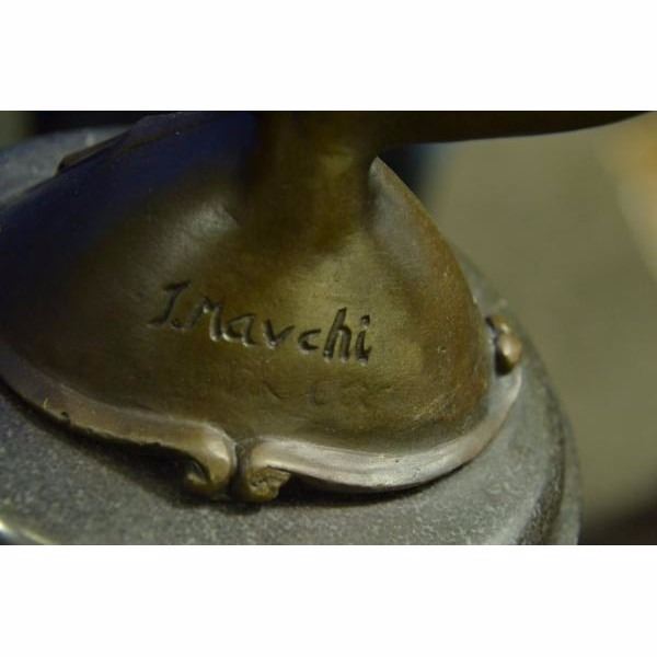 One of the most famous images in European art comes to life as a museum quality bronze in this timeless work seemingly plucked right out of the lake region of Italy. Patterned after the painting by Sandro Botticelli (1446-1510), our Design exclusive shapely bronze Venus statue with flowing tresses appears ready to step from her giant scalloped shell onto the shore and into "life. Beautifully cast in Special Brown patina-finished lost wax bronze, this heavyweight bronze Venus sculpture conveys that you take the exterior of your home as seriously as the interior. and is signed by the Artist Mavchi. Condition: This sculpture is in perfect condition. Bronze Dimensions with Marble Base:Height 11.5" x Width 5" Marble Dimensions:Diameter 4.5" Height without base: 10.5" Weight :5 LBS Inventory : 15YRD12883051