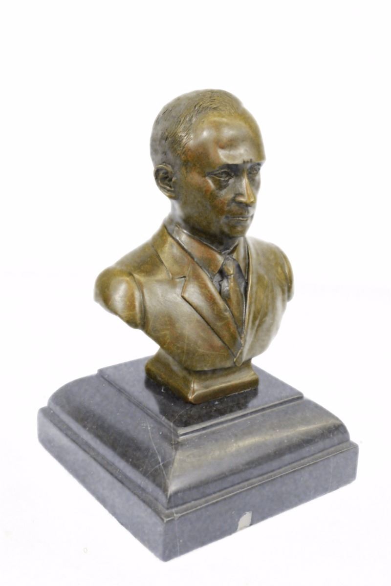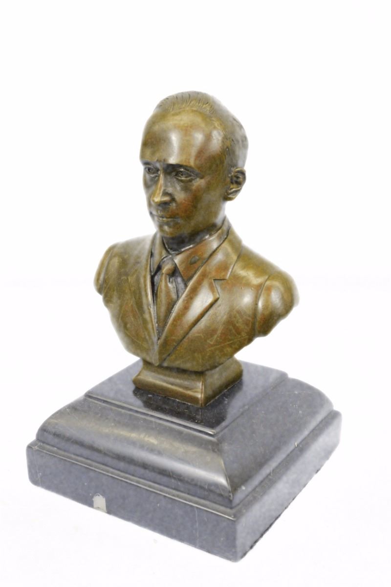 Vladimir Vladimirovich Putin Was Born October 7,1952 Served As The Second President Of The Russian Federation And Is The Current Prime Minister Of Russia, As Well As Chairman Of United Russia And Chairman Of The Council Of Ministers Of The Union Of Russia And Belarus. He Became Acring President On 31 December 1999, When President Boris Yeltsin Resigned In A Surprising Move. Putin Won The 2000 Presidential Election And In 2004 He Was Re-Elected For A Second Term Lasting Until May 7, 2008. Because Of Constitutionally Mandated Term Limits, Putin Was Ineligible To Run For A Third Consecutive Presidential Term. After The Victory Of His Successor, Dmitry Medvedev. In The 2008 Presidential Elections. Putin Was Nominated By Medvedev To Be Russia'S Prime Minister. Putin Took The Post On May 8, 2008. Putin Is Credited With Bringing Political Stability And Re-Establishing The Rule Of Law. During His Presidency, Russia'S Economy Bounced Back From Crisis, Seeing Gdp Increase By 72% In Ppp (Sixfold In Nominal), Poverty Decrease By More Than 50%, And Average Monthly Salaries Increase From $80 To $640. These Achievements Were Ascribed To Strong Macroeconomic Management, Important Fiscal Policy Reforms And A Confluence Of High Oil Prices, Surging Capital Inflows And Access To Low-Cost External Financing, And Were Described As Impressive By Analysts. This Beautiful Vladimir Vladimirovich Putin. Bronze Dimensions With Marble Base: Height 8 X Width 4 inches. Weight: 5 Lbs.
