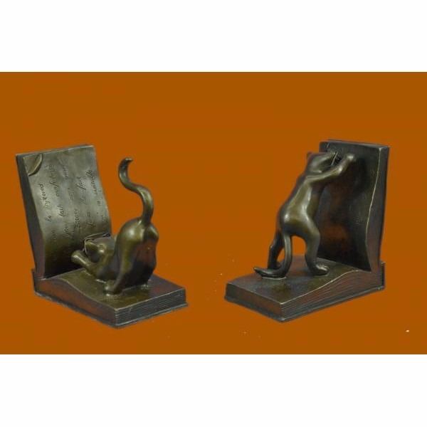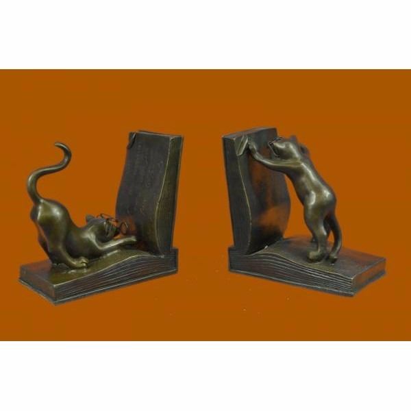 Cats bookends-set of 2 Whether you are a cat lover or not, you cannot resist this set of bookends, it really captured the essence of cats in a fun way. It is a 100% bronze, cast using the lost wax method. It stands 6" tall. This sculpture is signed by artist Mario Nick. Condition : This sculpture is in perfect condition. Each Bronze Dimensions :Height 6" x Width 6" Total Weight :9 LBS Inventory : 32AL418/4194923