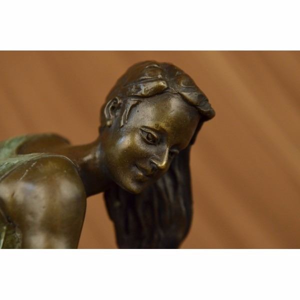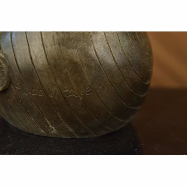 Gorgeous art deco style bronze statue Depicts the classic ball dancer figurine Great piece sums up the 1920s style and would add panache to any interiors schemes, 100% bronze and handmade, brown patina sculpture was cast using the " Lost-Wax Method" and its mounted on a blackmarble base signed by artist Aldo Vitaleh.Offered in great shape ready for home use Will ship to anywhere in the world Condition: This sculpture is in perfect condition. Bronze Dimensions with Marble Base:Height 9" x Width 10" Marble Dimensions: 10 " X 5" . Height without base:8" Weight : 11 LBS Inventory:47 2314 74